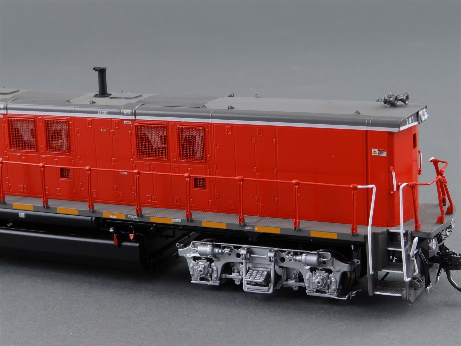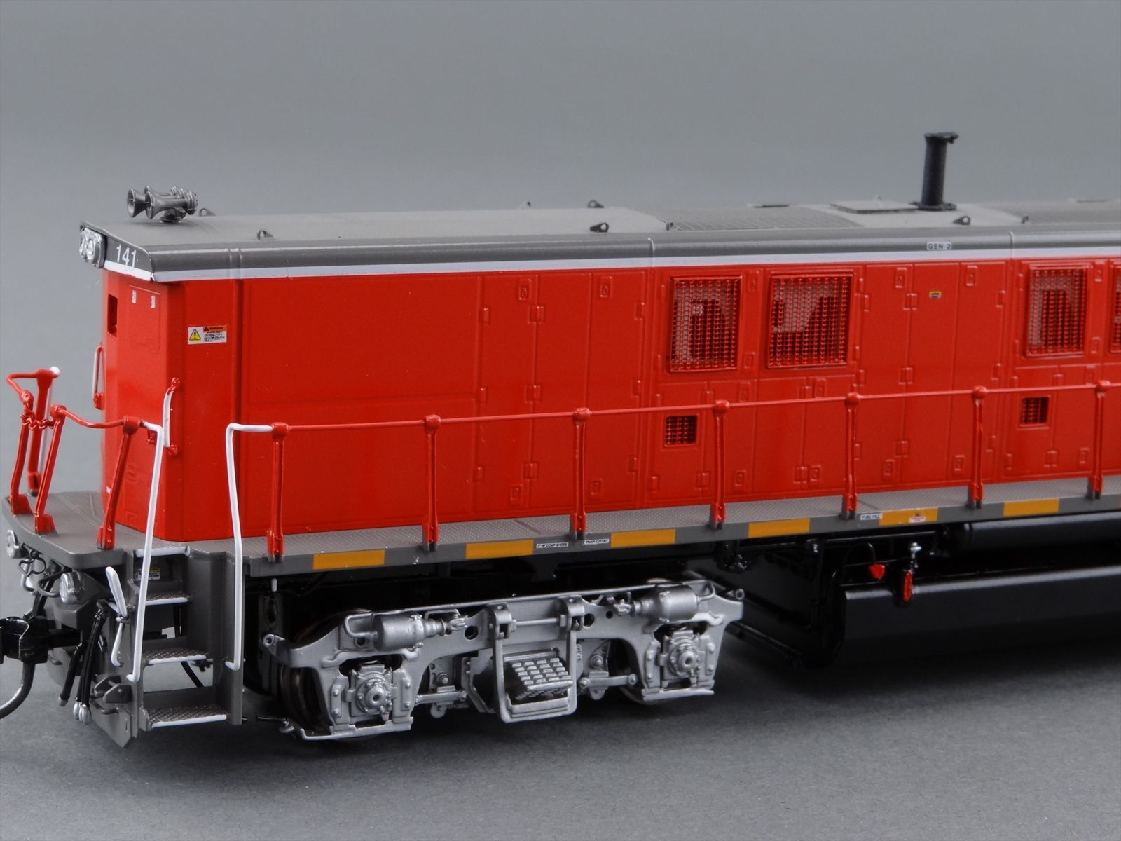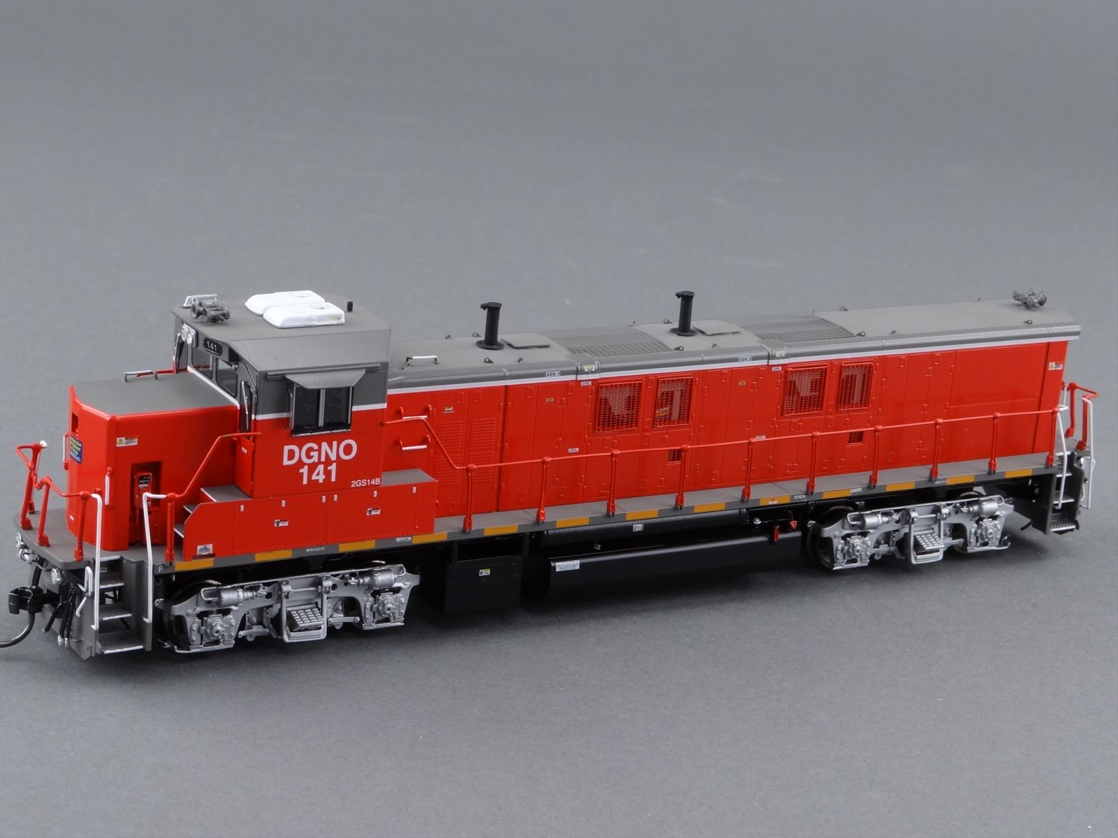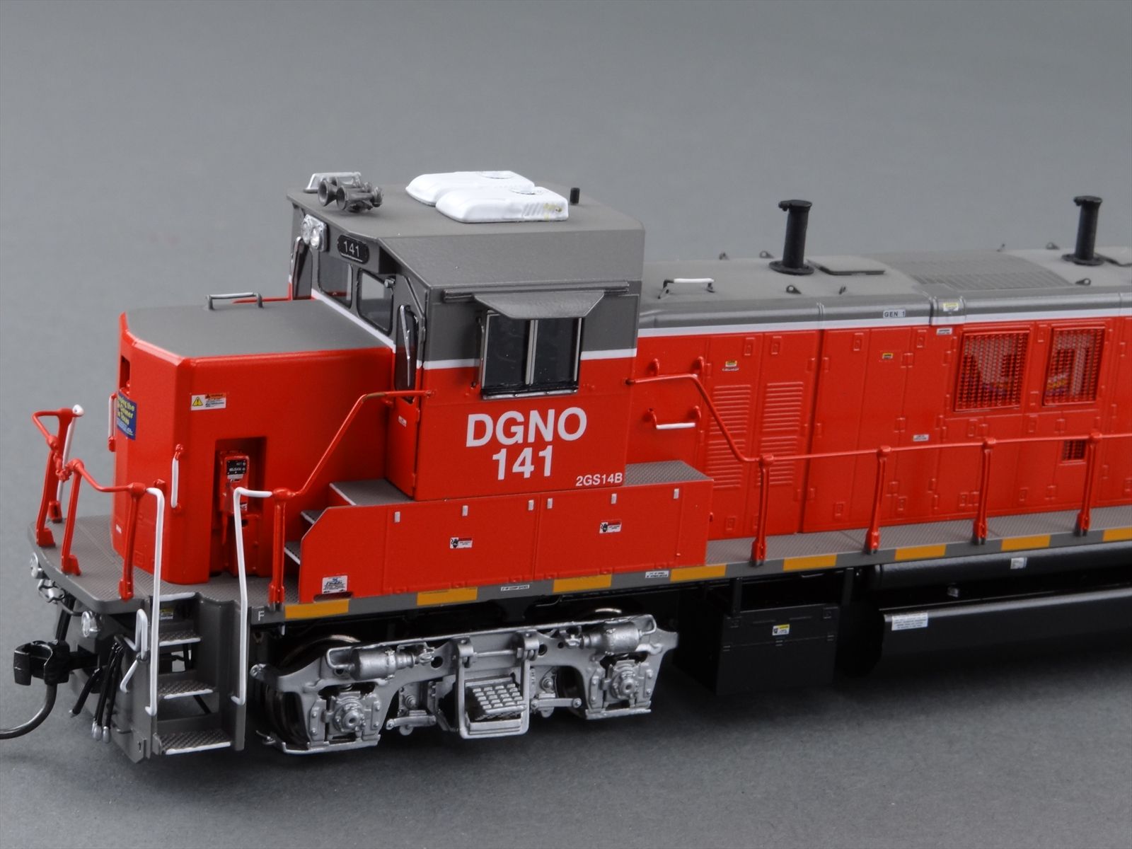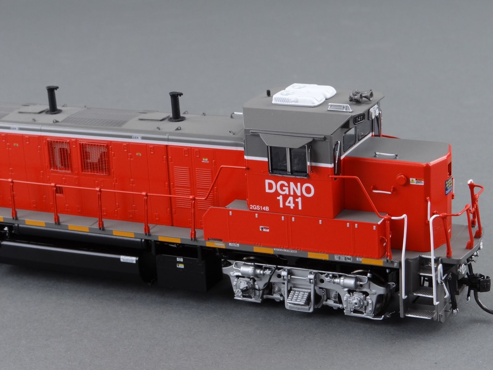 | Notes: | FACTORY PAINTED - DGNO 2GS14B ROAD # 141, GENSET SWITCHERS,DARK RED/ GRAY/ WHITE, BLACK UNDERFRAME, SILVER TRUCKS , LETTERED, LIGHTS,DITCH LIGHTS, DCC PLUG INSTALLED AT |