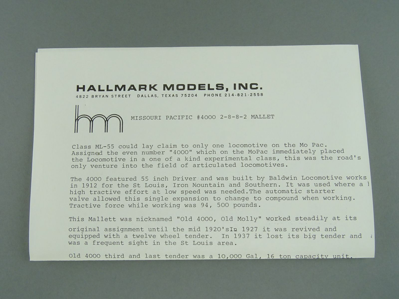 HO Brass Model - Hallmark MP Missouri Pacific 2-8-8-2 w/ Caboose RARE - Unpainted