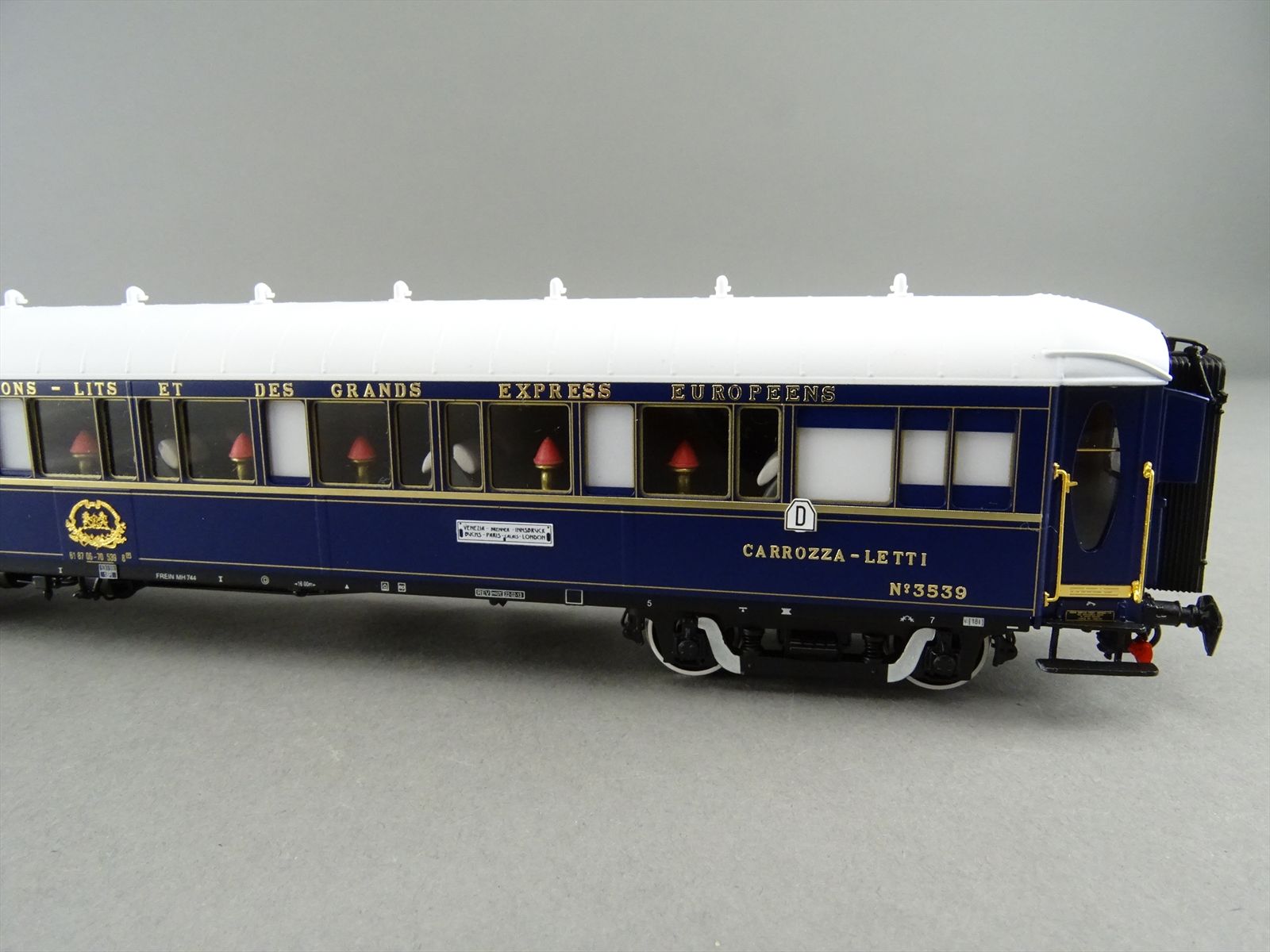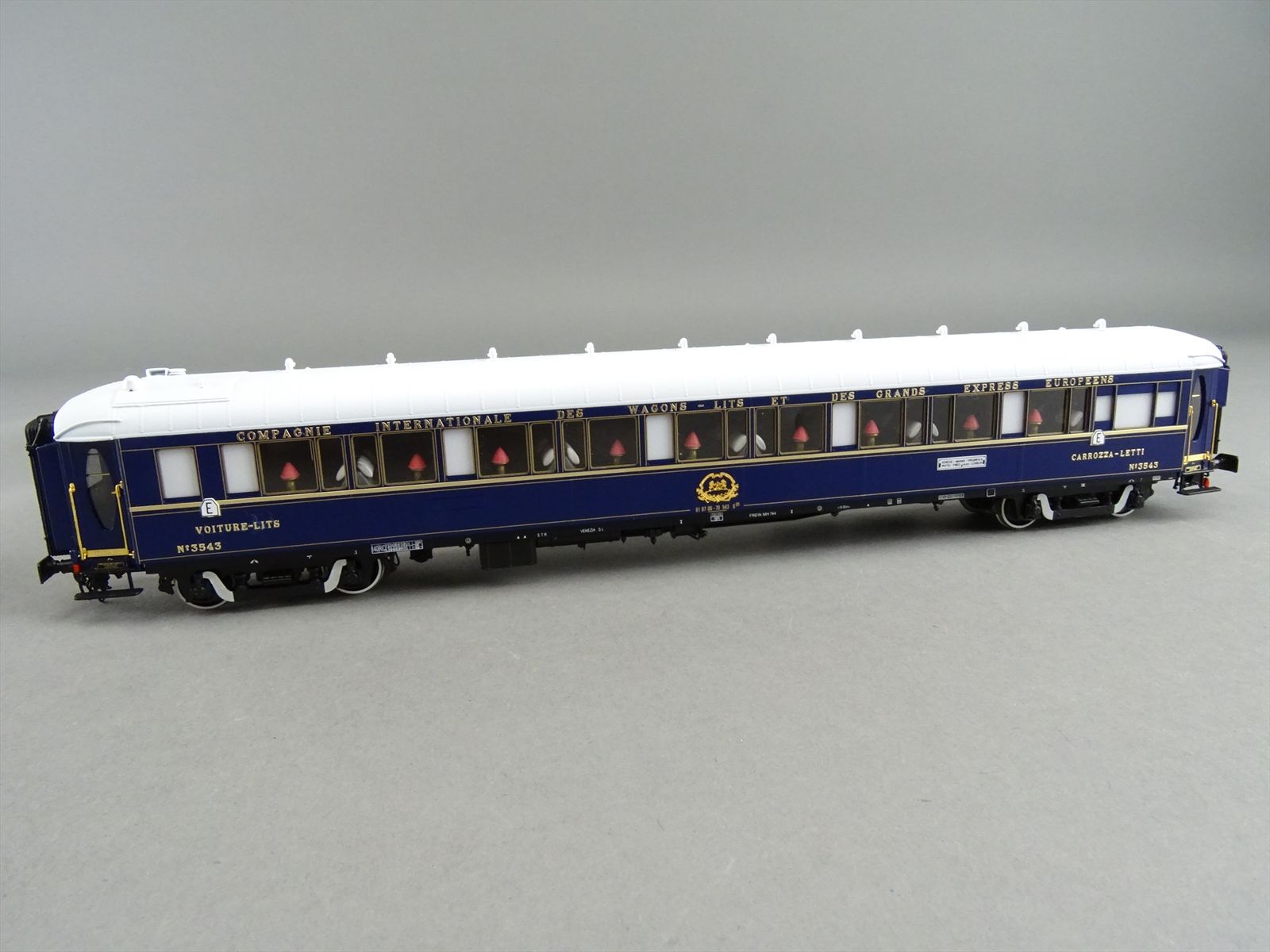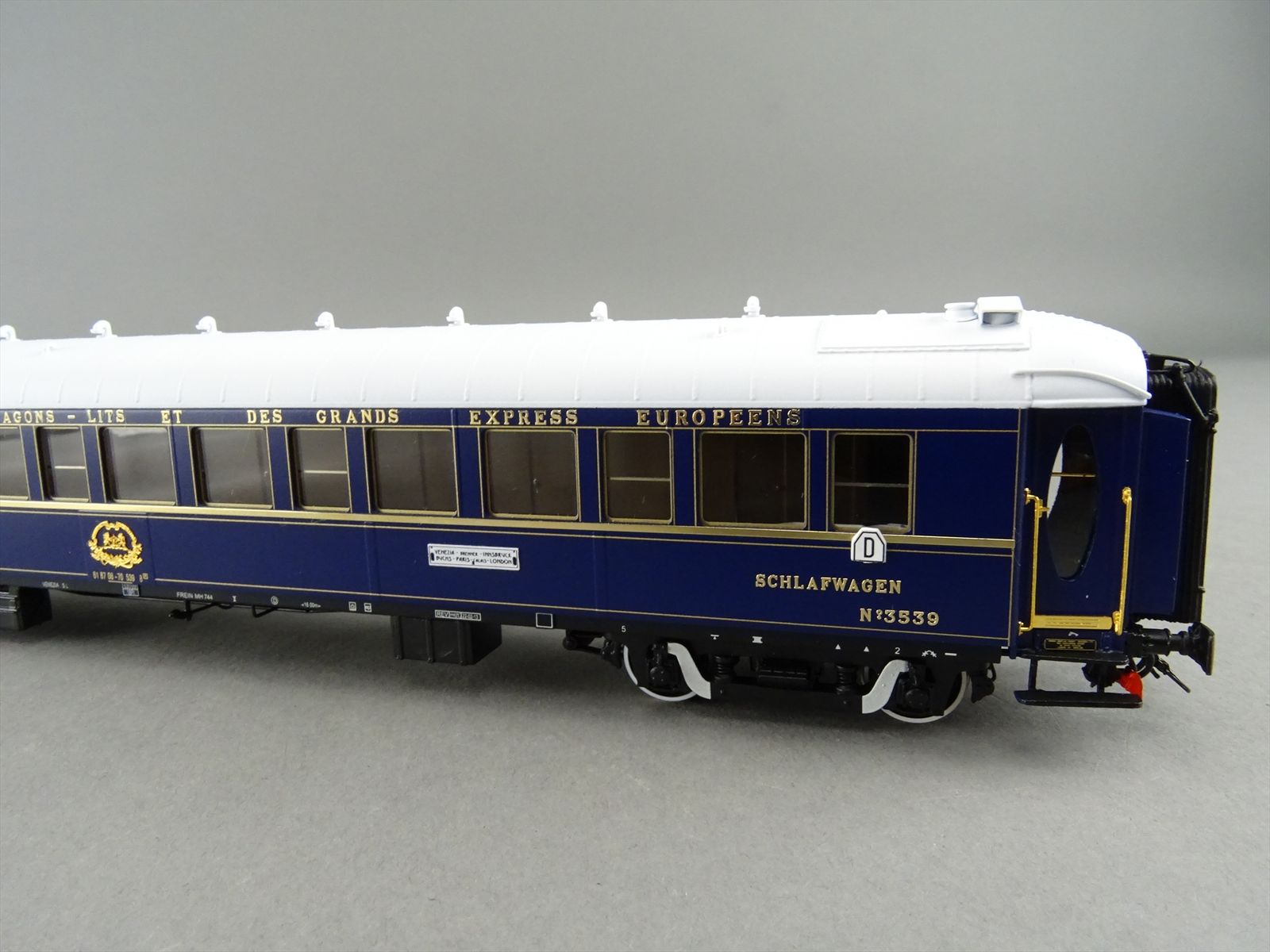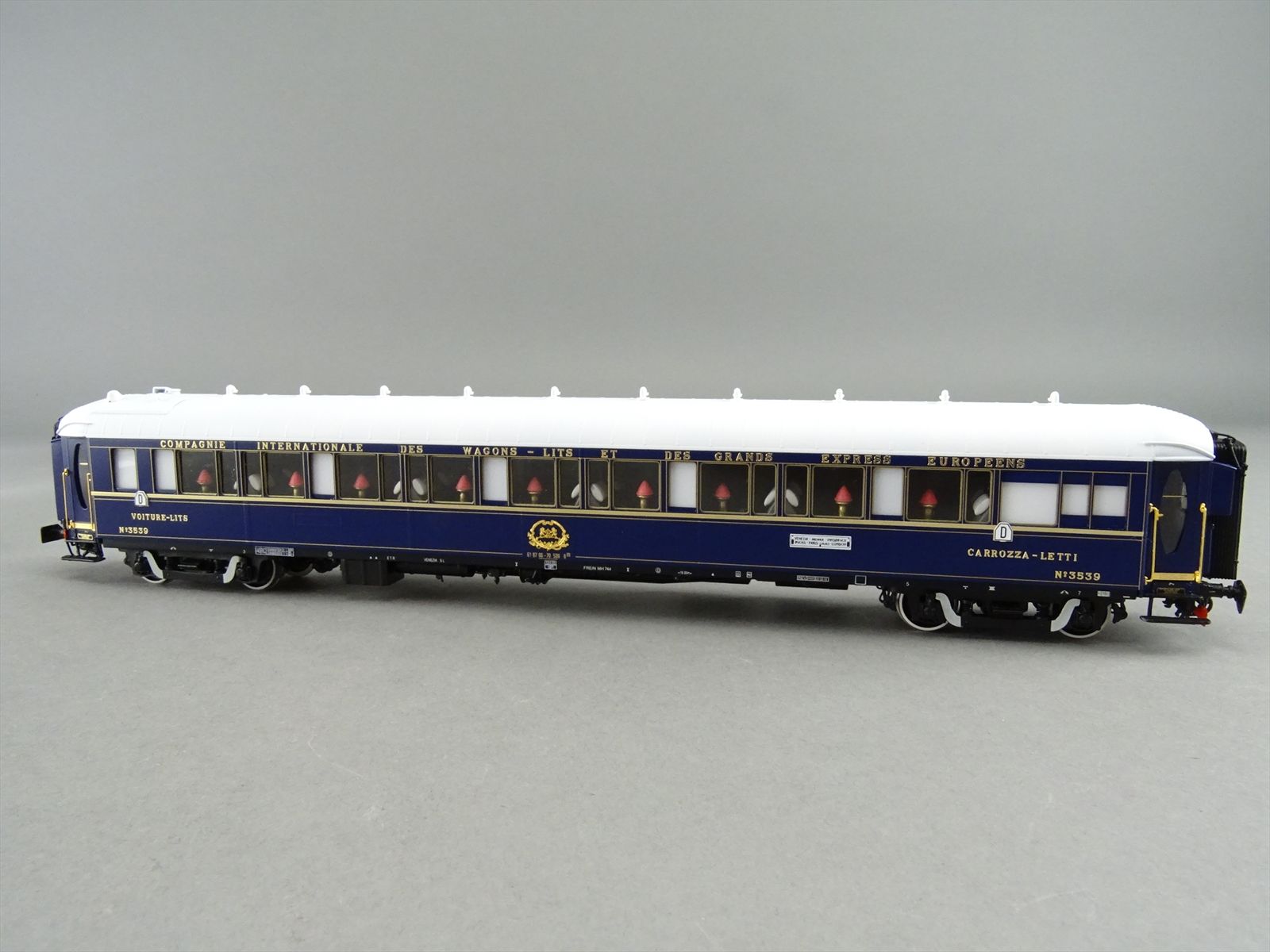 | Notes: | FACTORY PAINTED - CIWL ORIENT EXPRESS - 3 TYPE-LX SLEEPER CARS SLEEPING - #3539 / 3543 / 3553- PENNSYLVANIAN BOGIE W/ SWAN NECK - ALL GOLD COLOR PARTS ARE REAL GOLD PLATED - LIGHTS - FULL INTERIOR DETAIL |