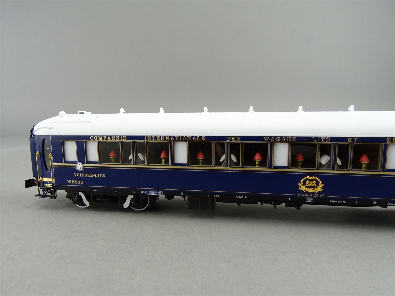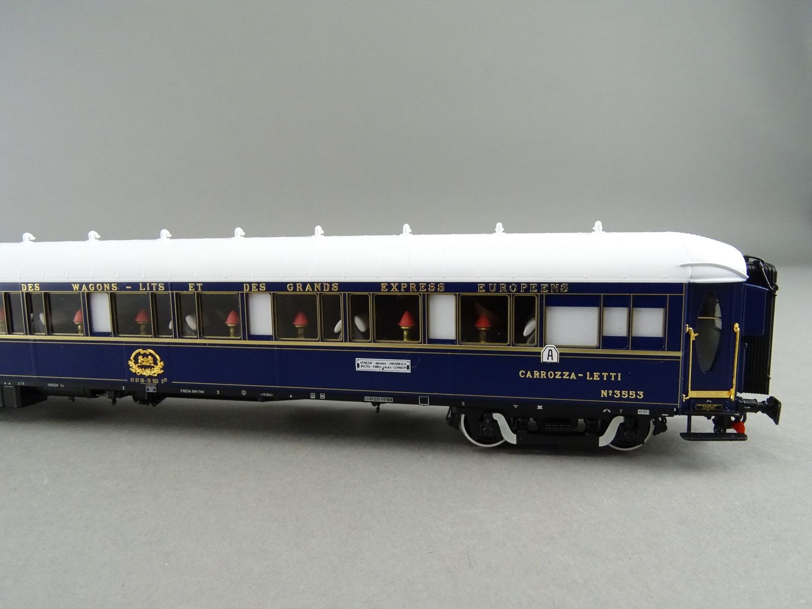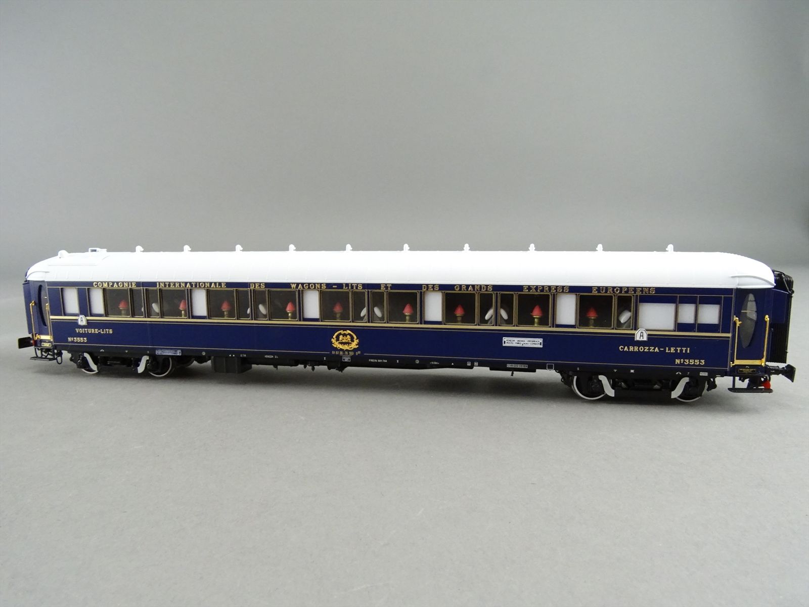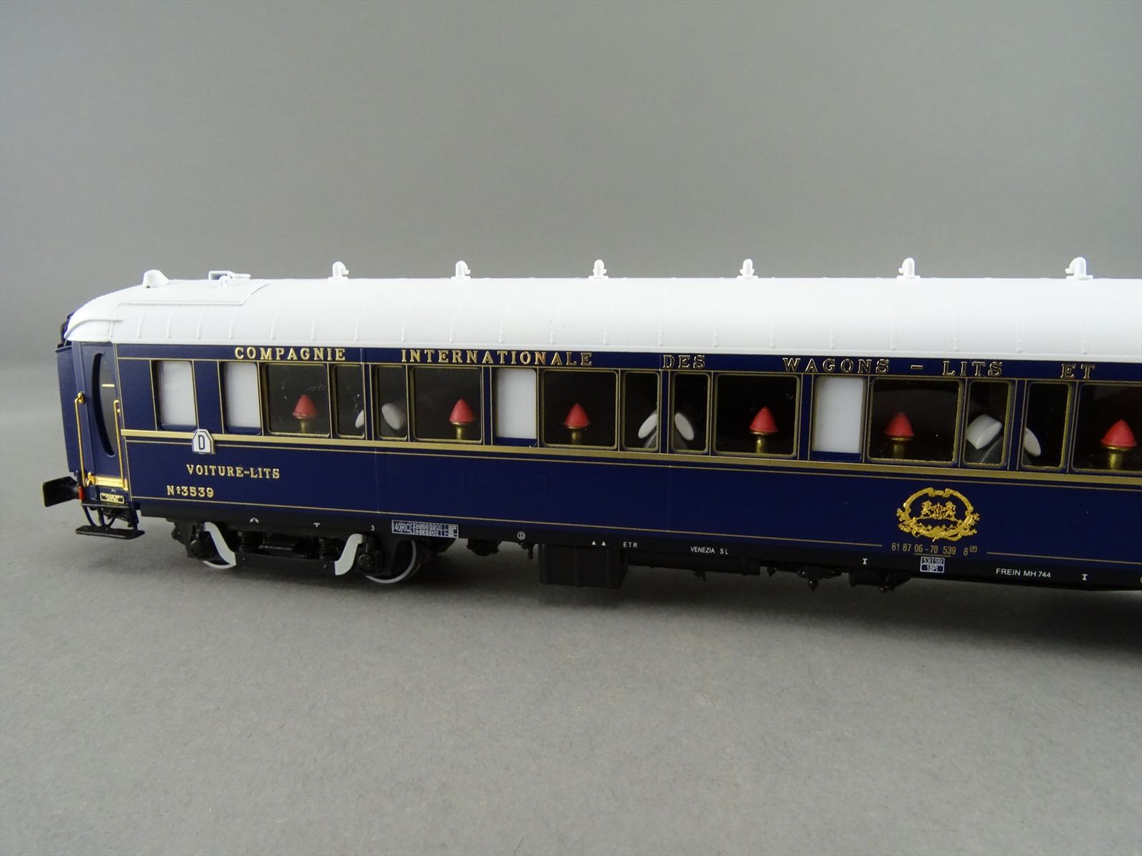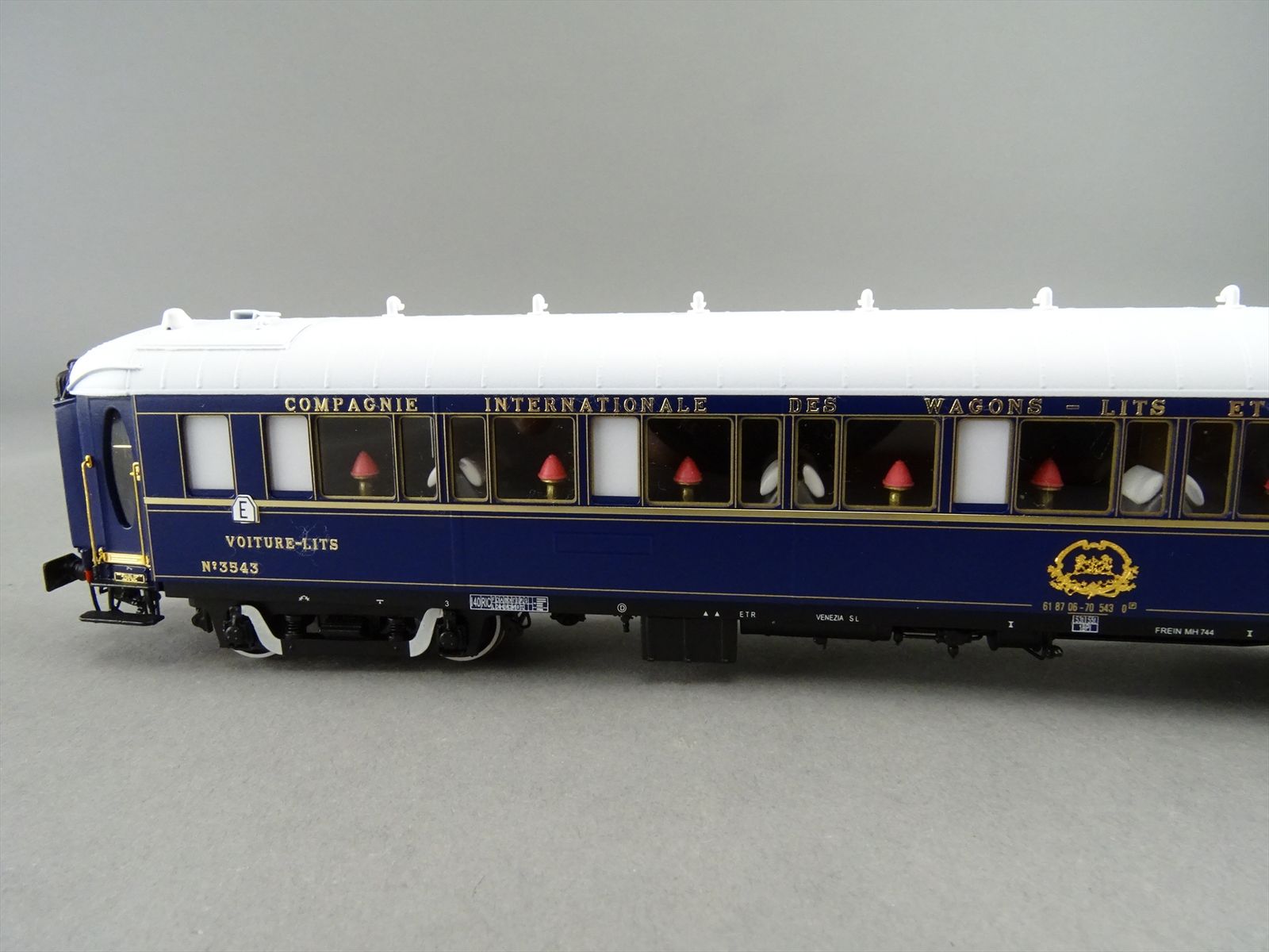 | Notes: | FACTORY PAINTED - CIWL ORIENT EXPRESS - 3 TYPE-LX SLEEPER CARS SLEEPING - #3539 / 3543 / 3553- PENNSYLVANIAN BOGIE W/ SWAN NECK - ALL GOLD COLOR PARTS ARE REAL GOLD PLATED - LIGHTS - FULL INTERIOR DETAIL |