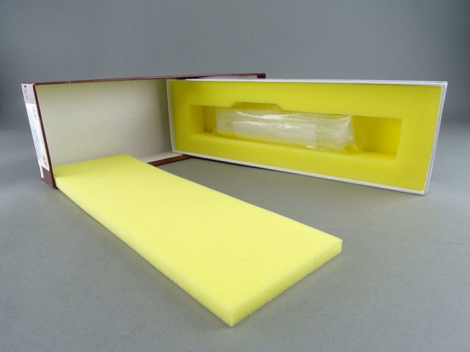 - The original box and foam are included. The box shows minor wear and tear.
