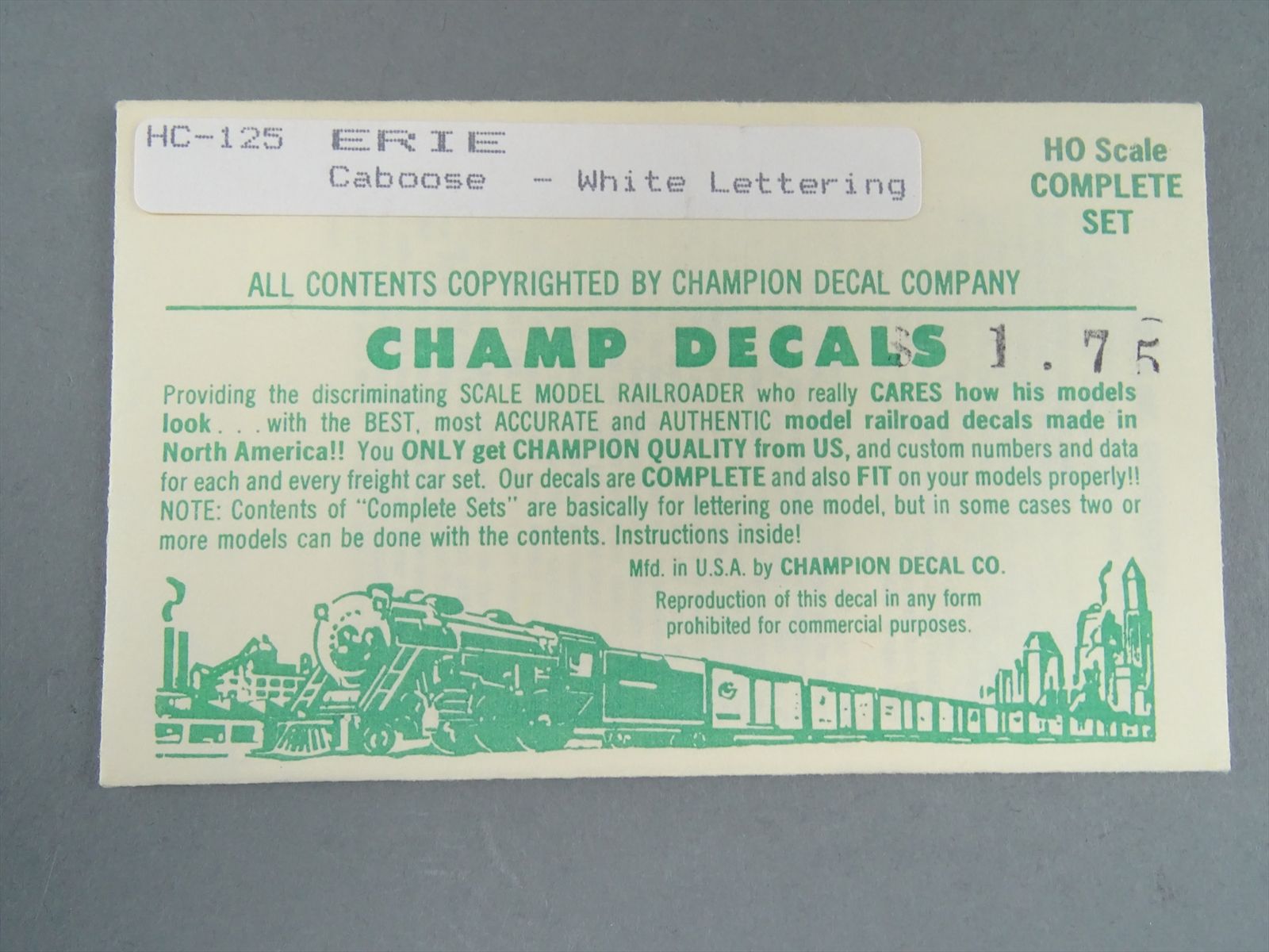 | Notes: | UNPAINTED - "OFF-SET" CUP. CABOOSE C222-C269 "RADIO EQUIPPED |