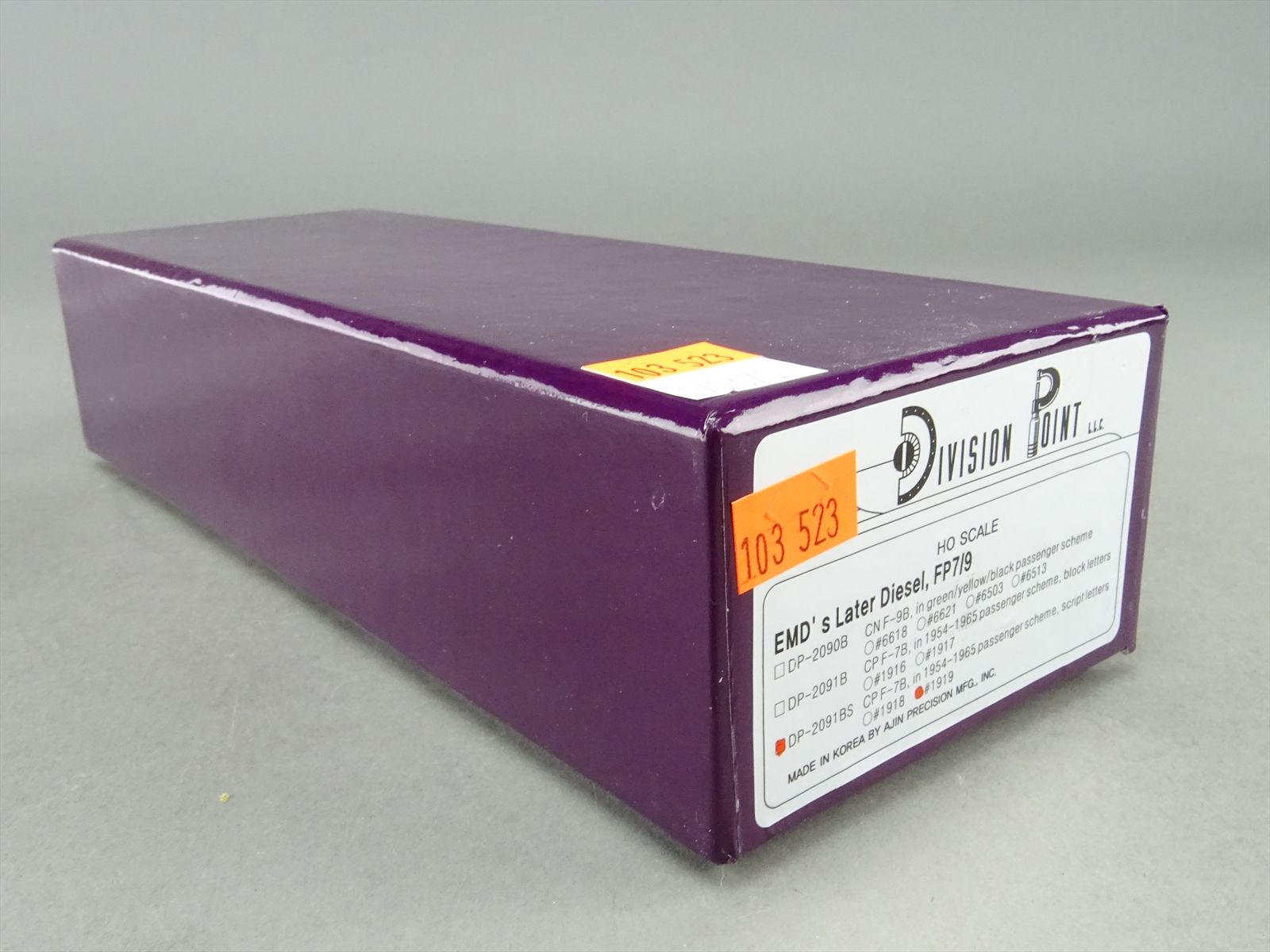 | Notes: | FACTORY PAINTED - F-9B - GRAY / TUSCAN 1954 - 1965 PASSENGER SCHEME - SCRIPT LETTERS - #1918 OR #1919 - RUN 1 - CP - DP-2091BS |