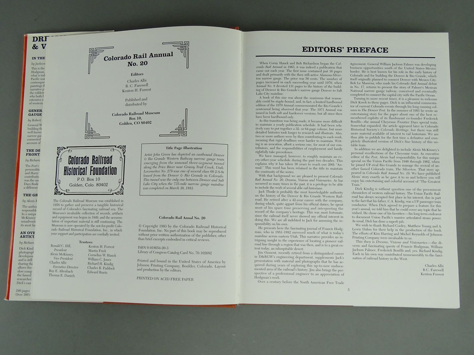 Railroad Book - Dreams, Visions and Visionaries Colorado Rail Annual No. 20 - 239 pages