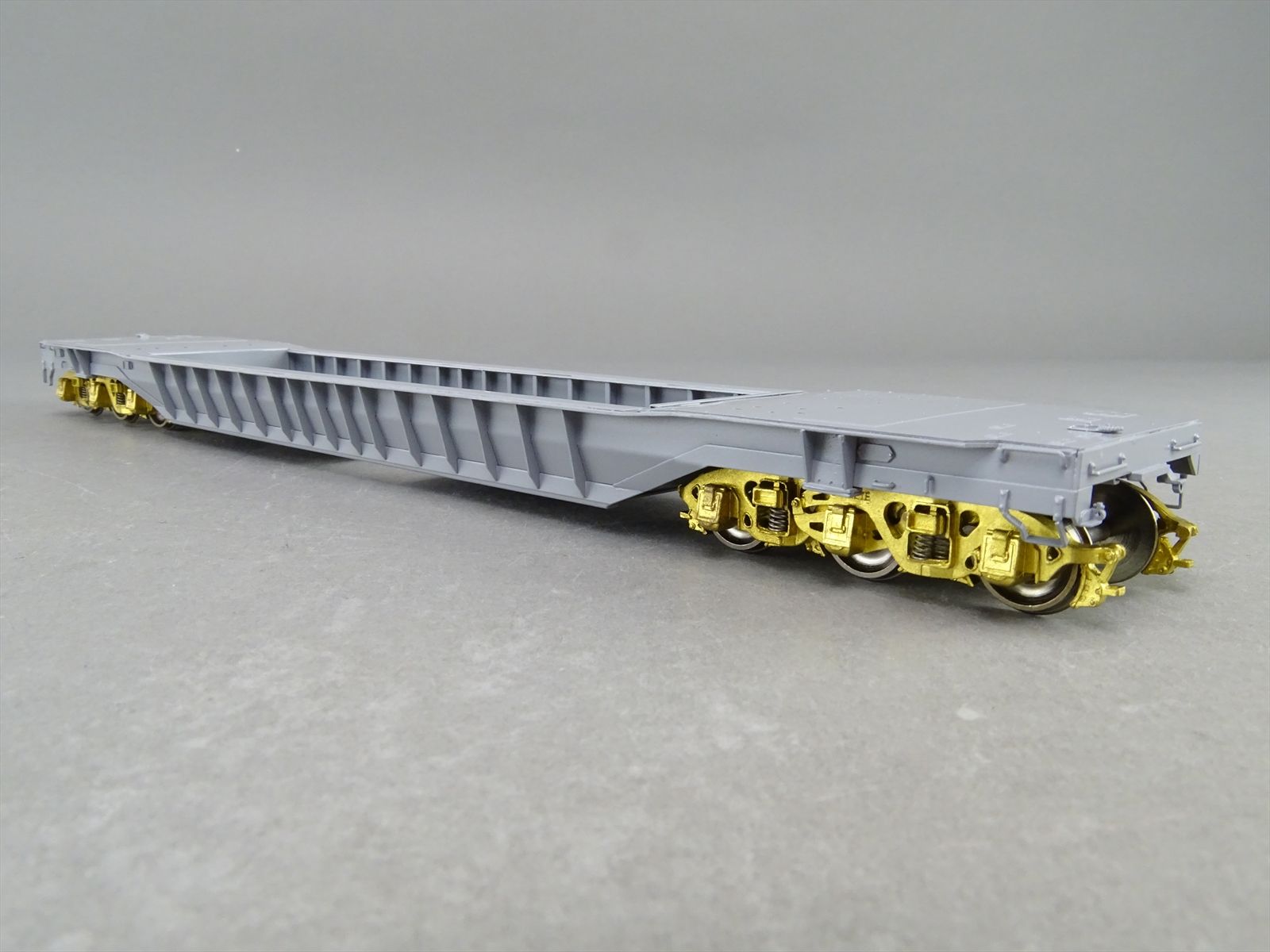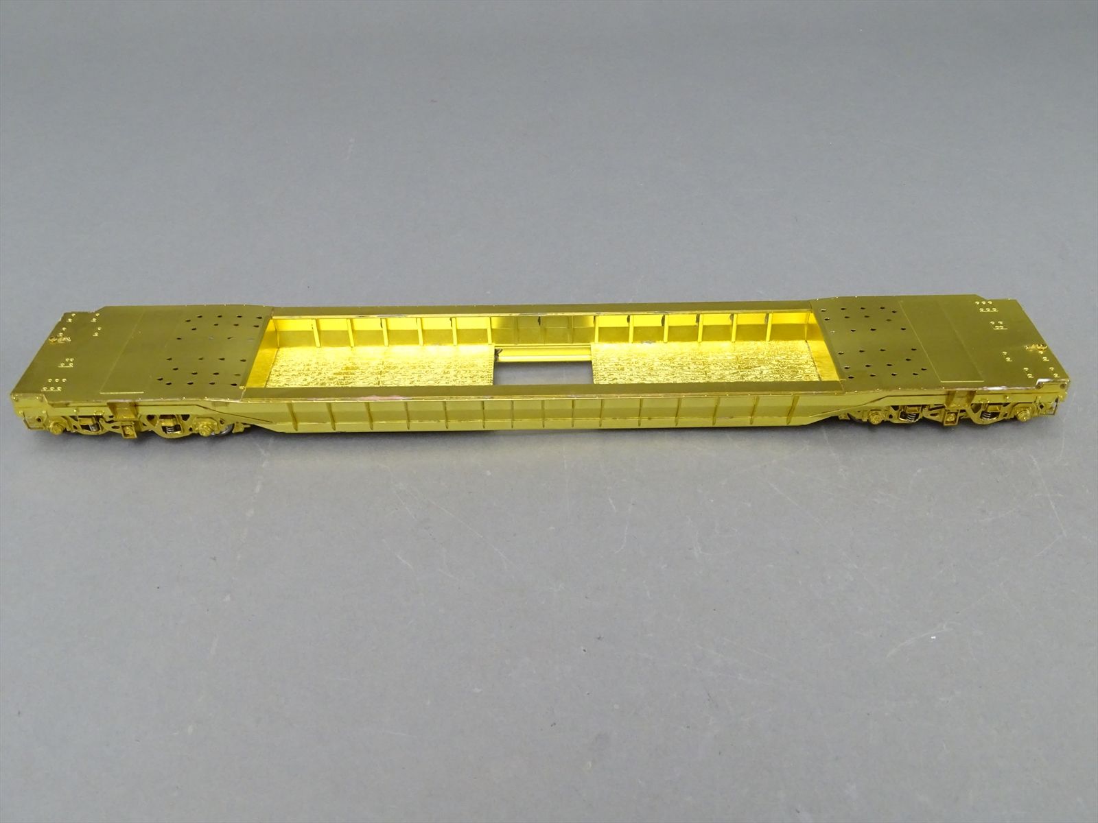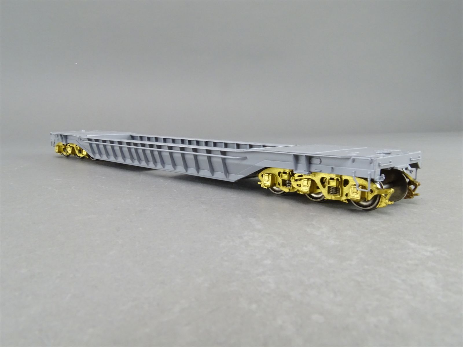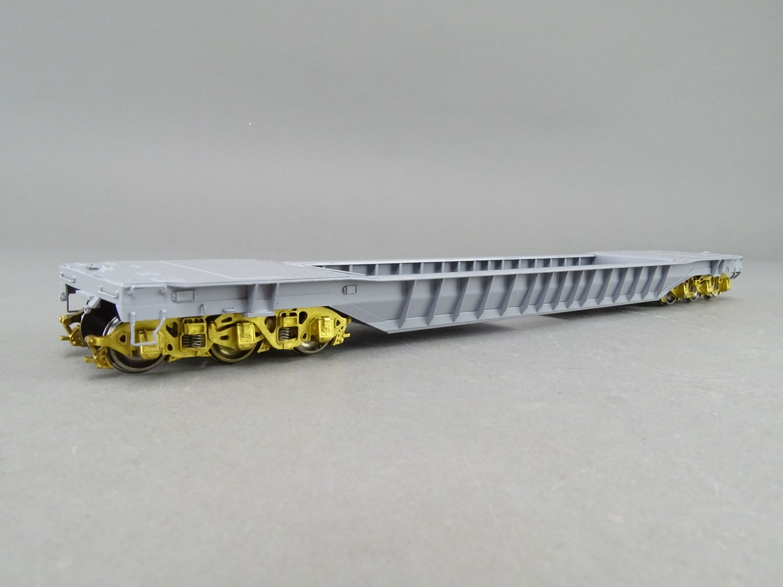 S Brass Model - RRM C&O / NYC 65' Well Hole Flatcar Flat Car Roller Bearing Trucks - Gray Primer Finish - Ajin