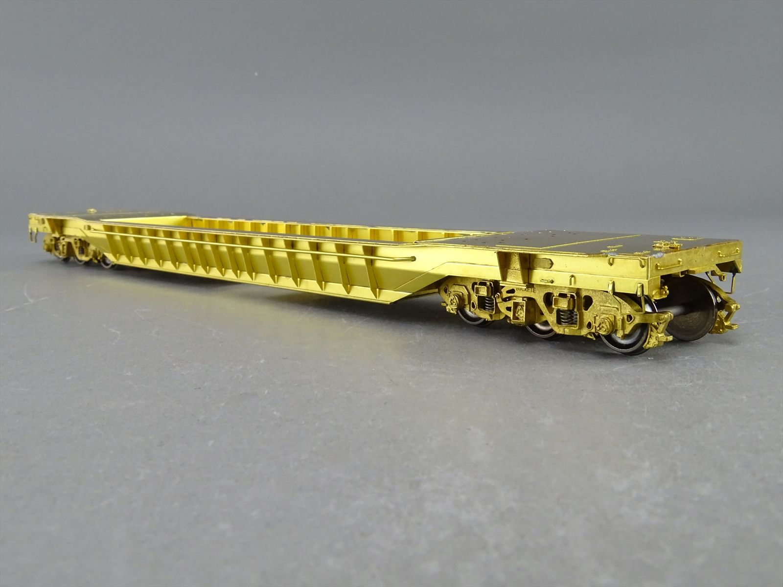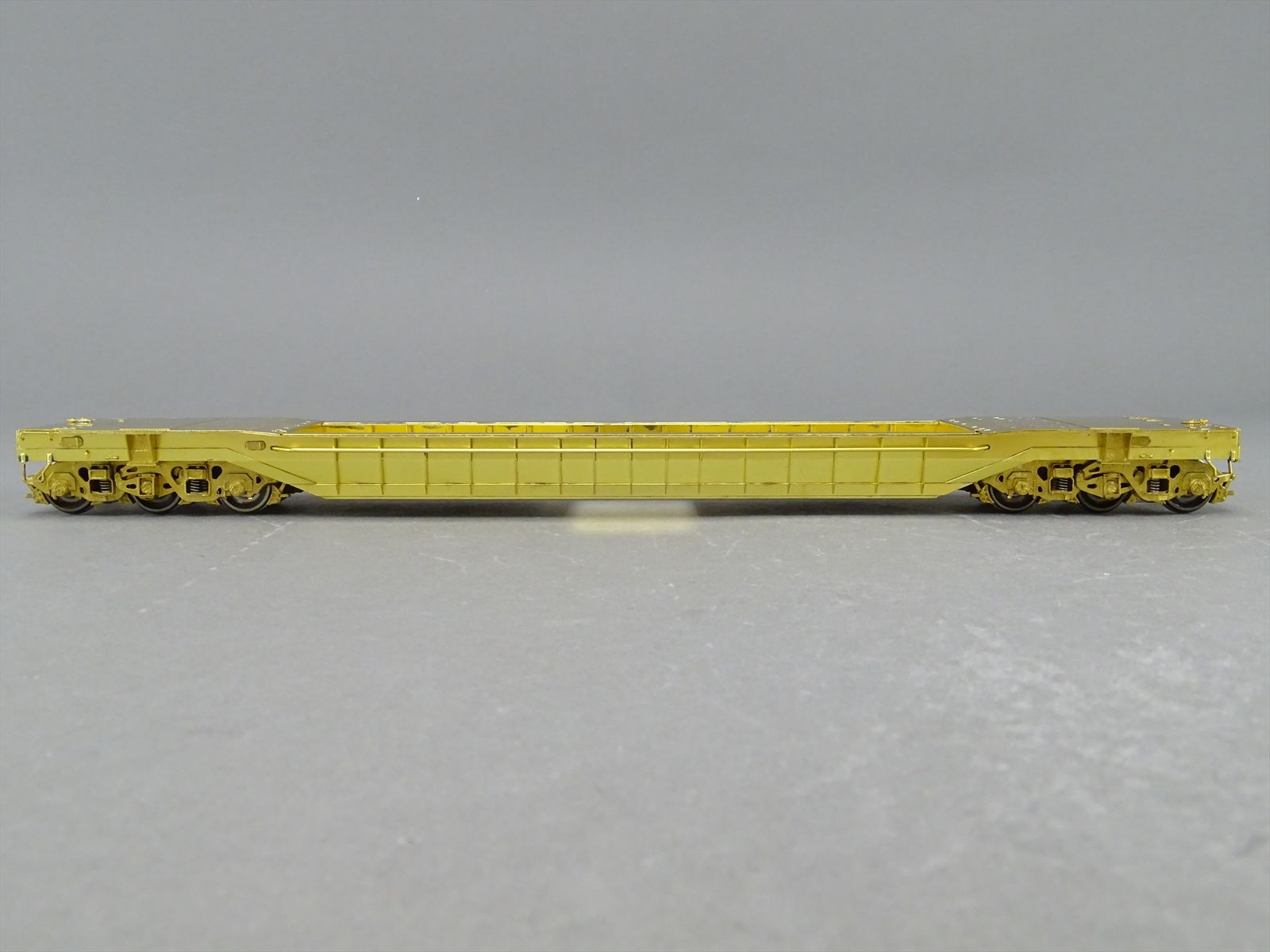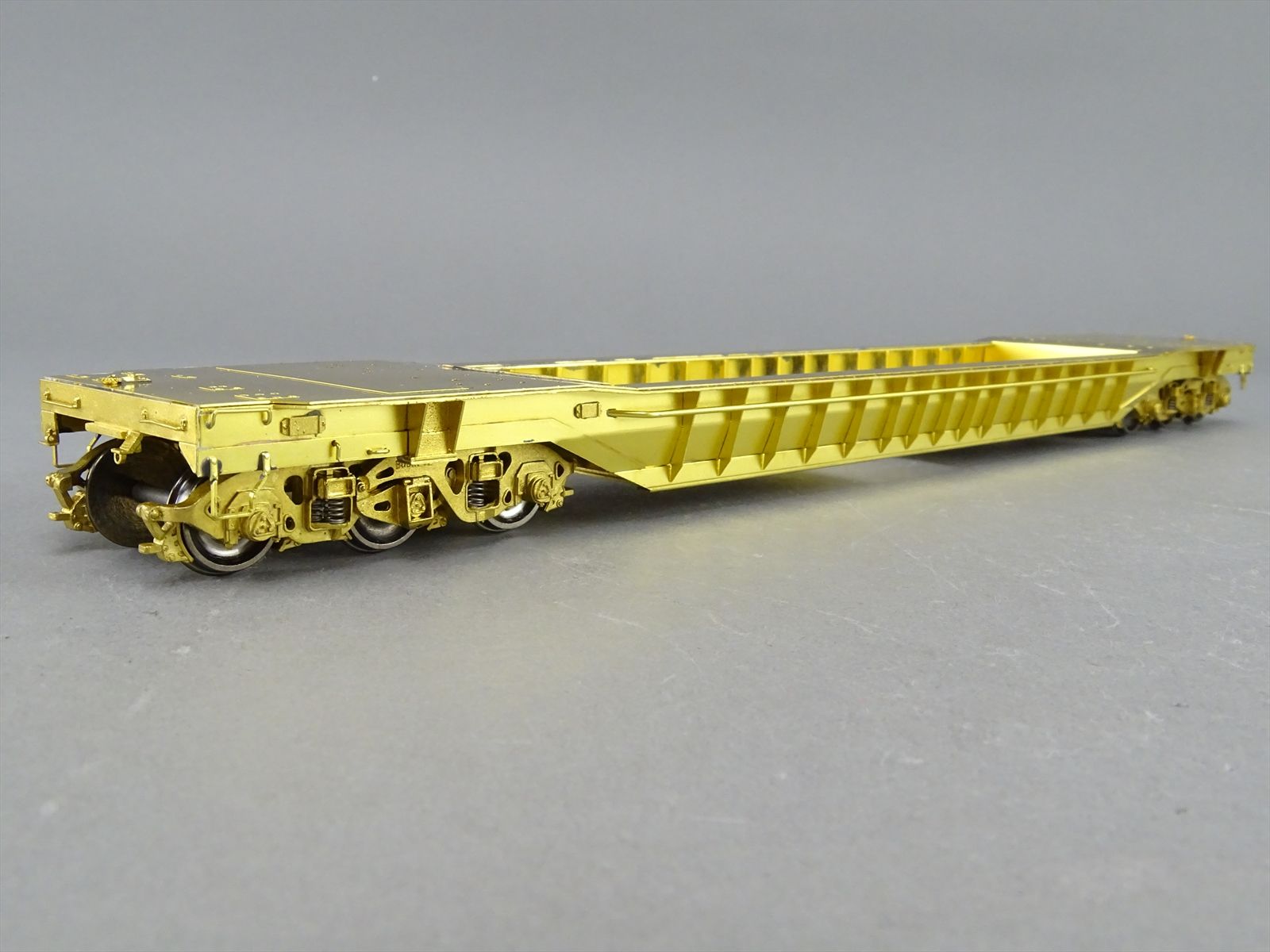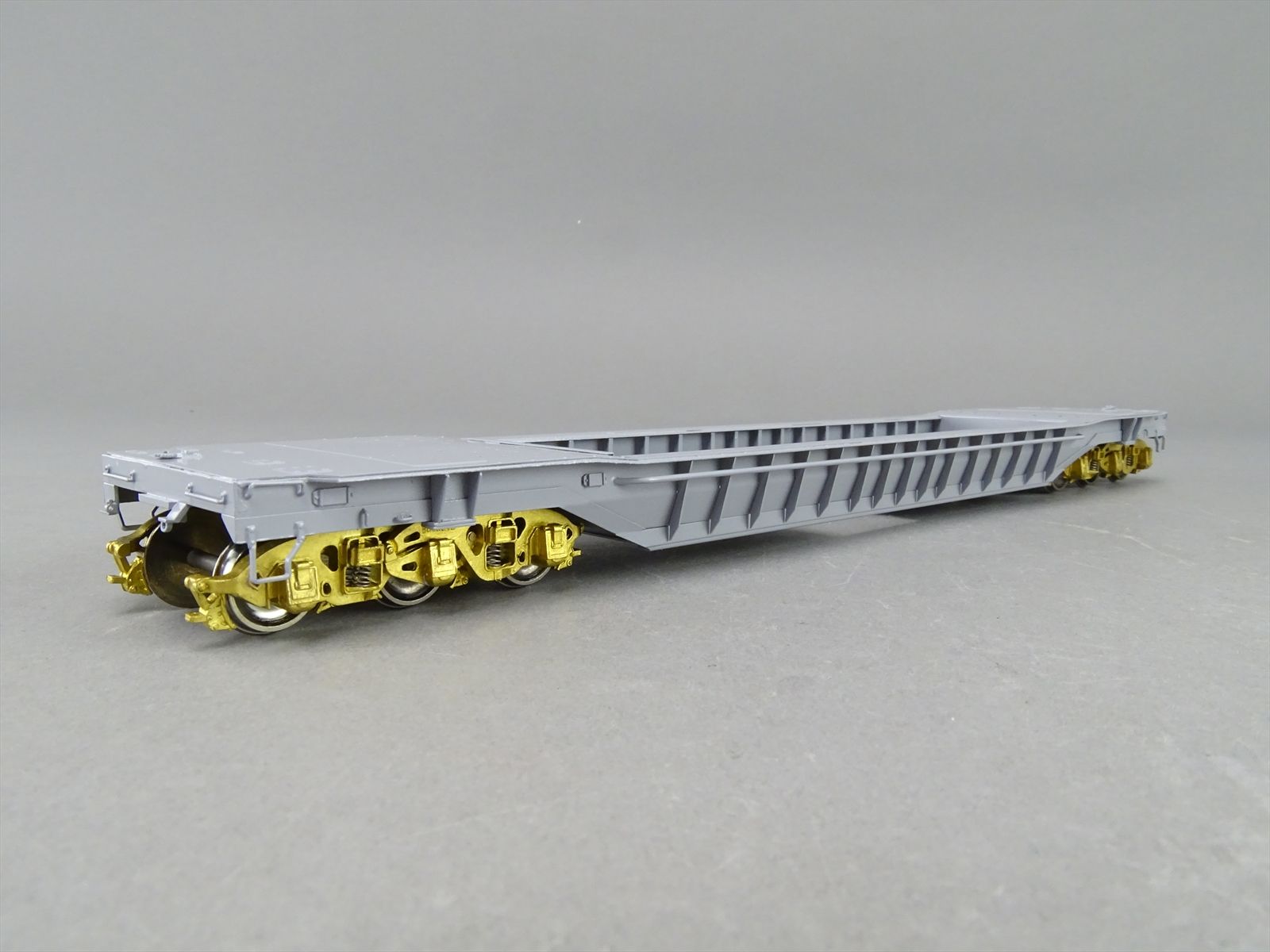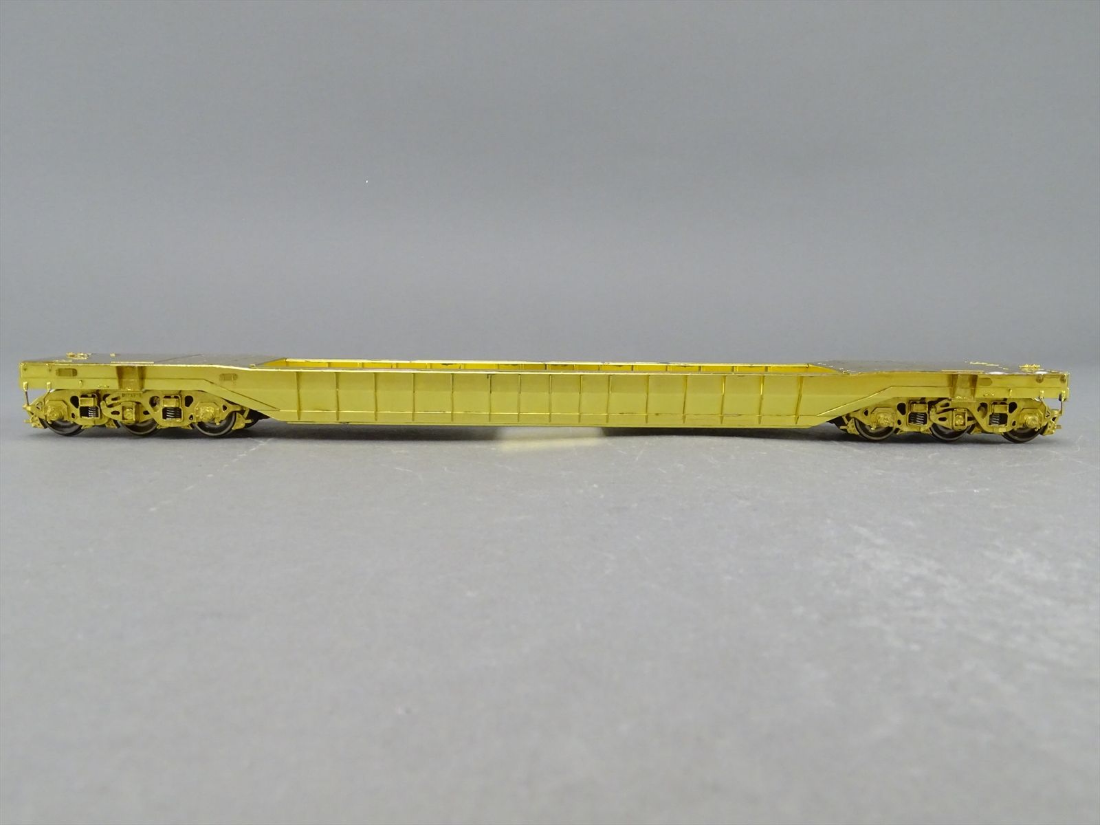 S Brass Model - RRM C&O / NYC 65' Well Hole Flatcar Flat Car Roller Bearing Trucks - Gray Primer Finish - Ajin