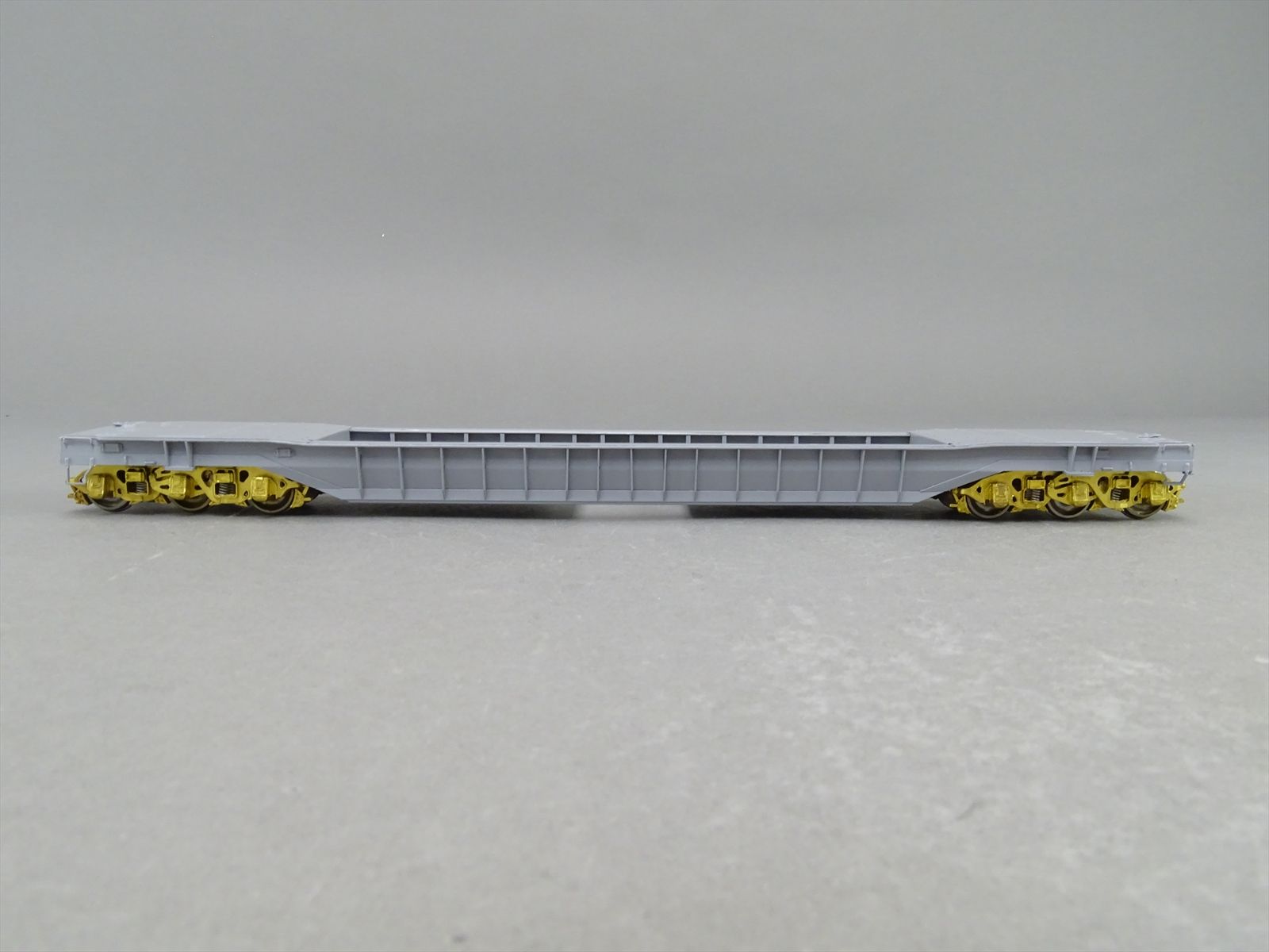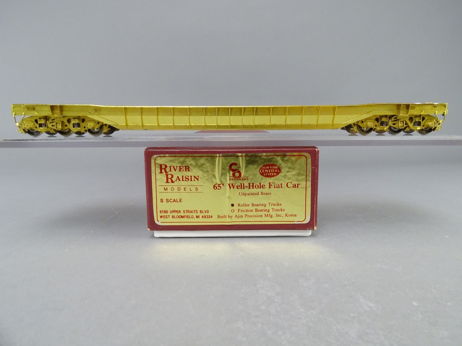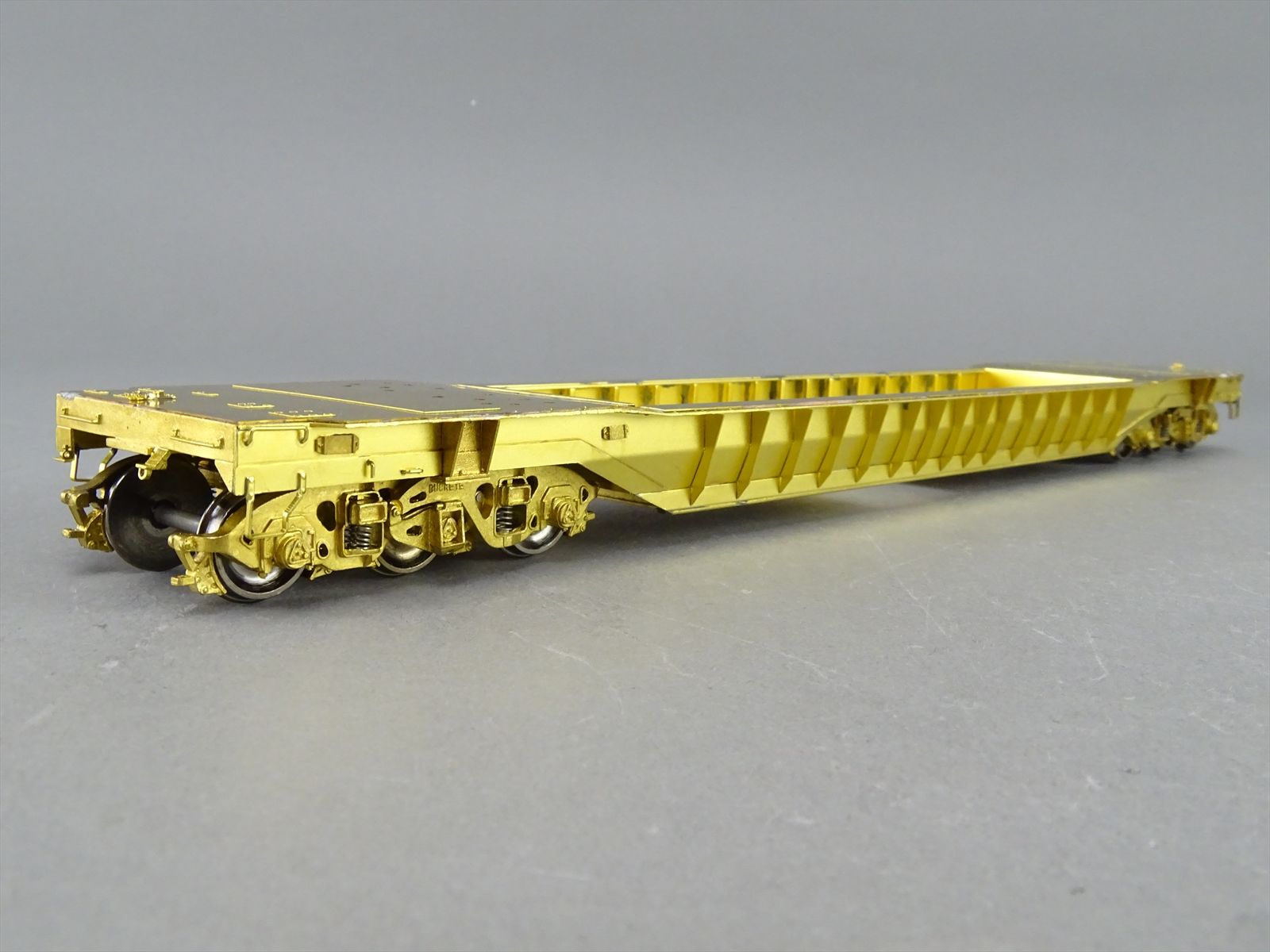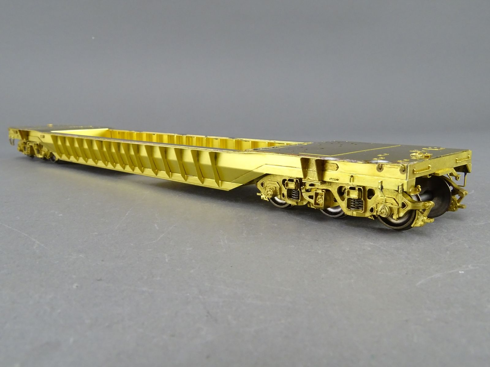 S Brass Model - RRM C&O / NYC 65' Well Hole Flatcar Flat Car Roller Bearing Trucks - Gray Primer Finish - Ajin