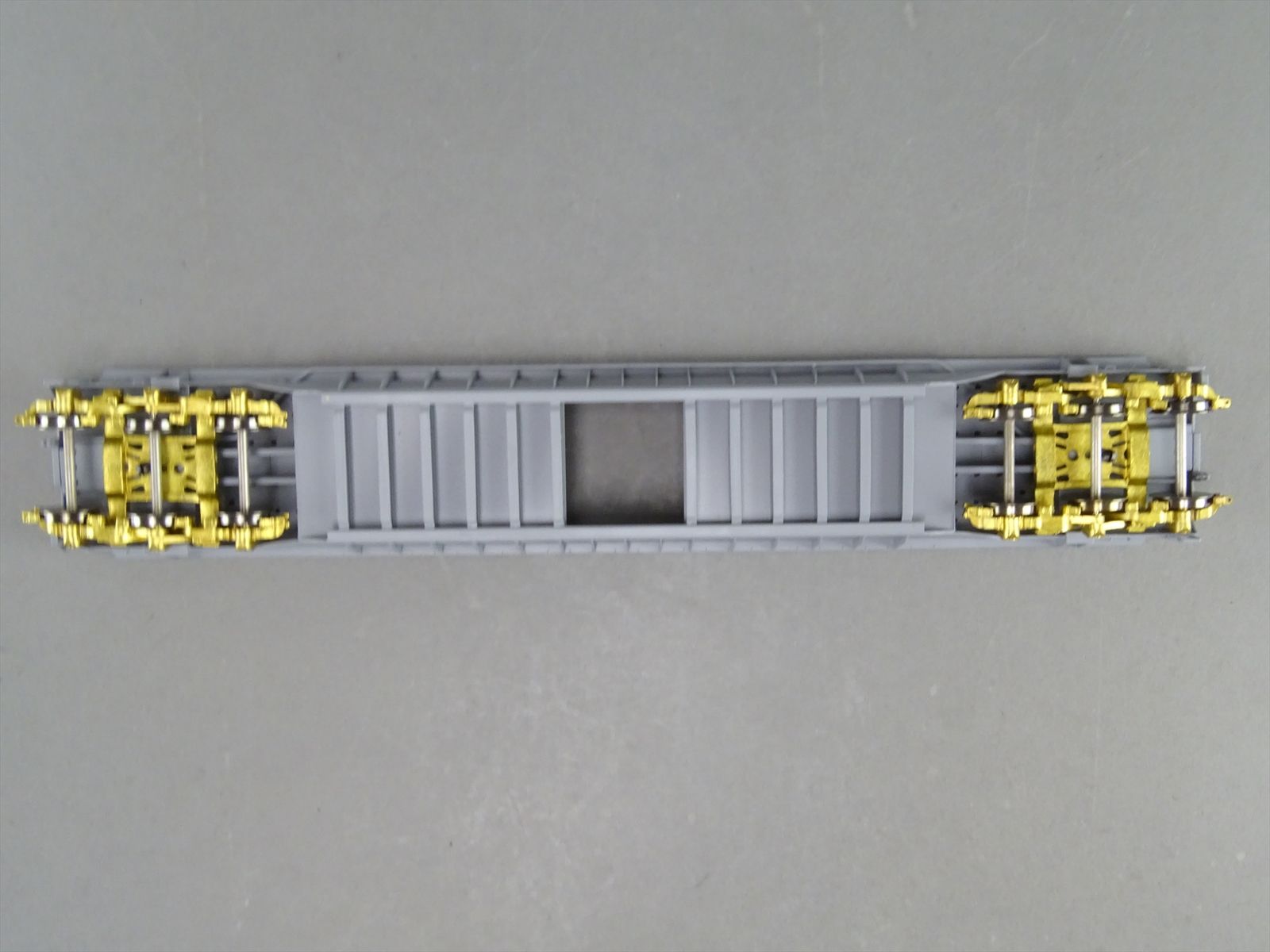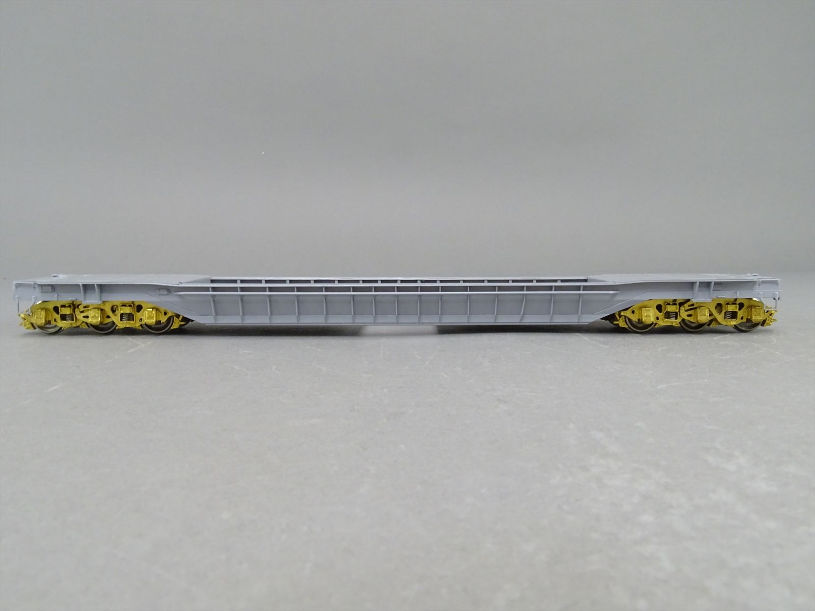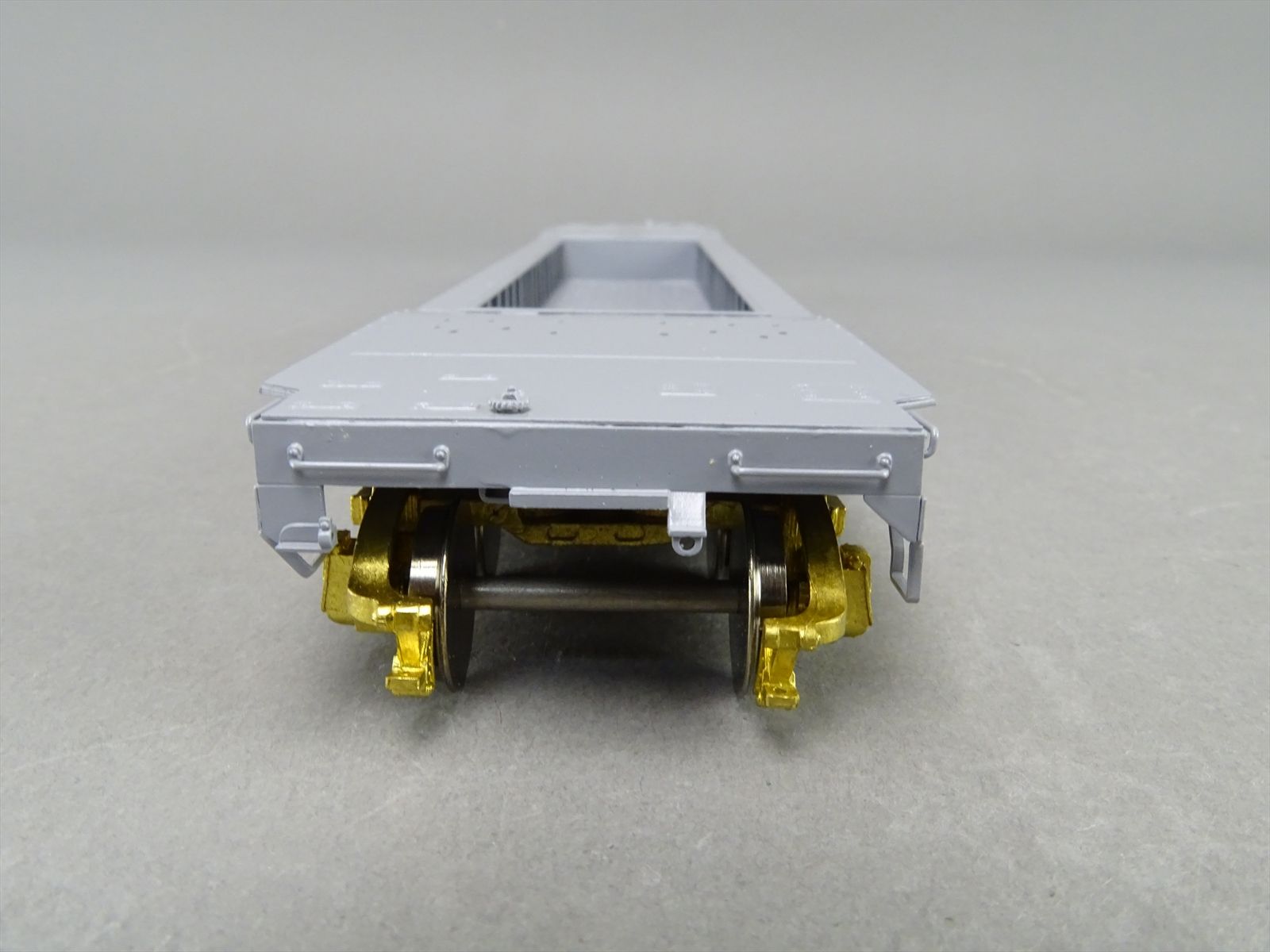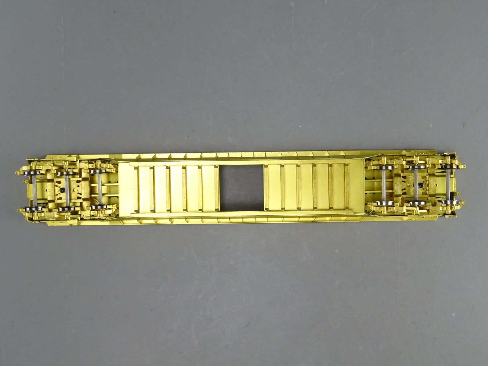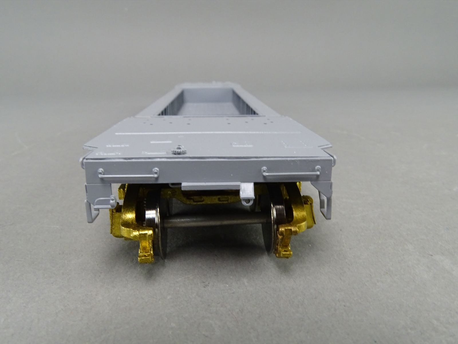 S Brass Model - RRM C&O / NYC 65' Well Hole Flatcar Flat Car Roller Bearing Trucks - Gray Primer Finish - Ajin