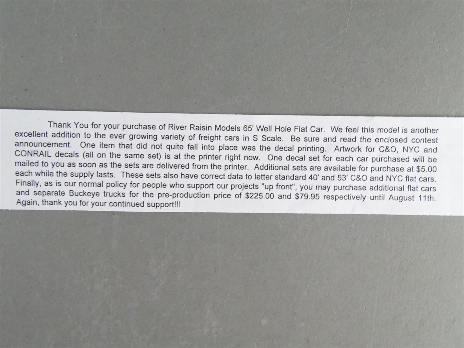 | Notes: | PRIMER FINISH - C&O / NYC 65' WELL HOLE FLATCAR W/ ROLLER BEARING OR FRICTION BEARING TRUCKS |