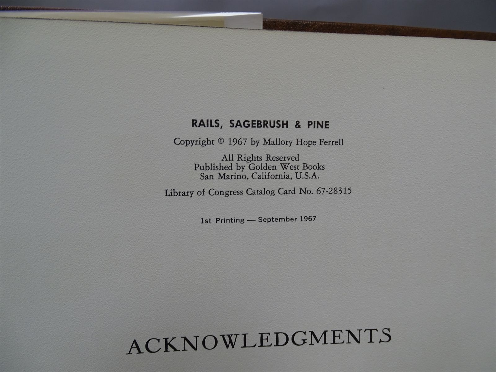 First Printing 1967 - Published by Golden West Books