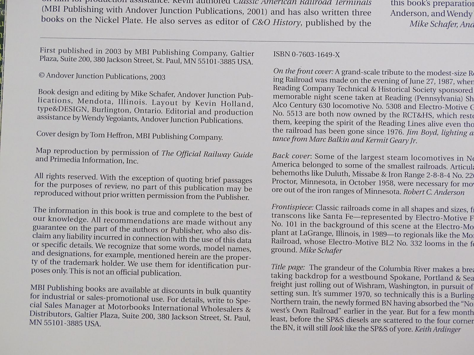 Railroad Book - Classic American Railroads Vol. 3 - Mike Schafer - 156 pages