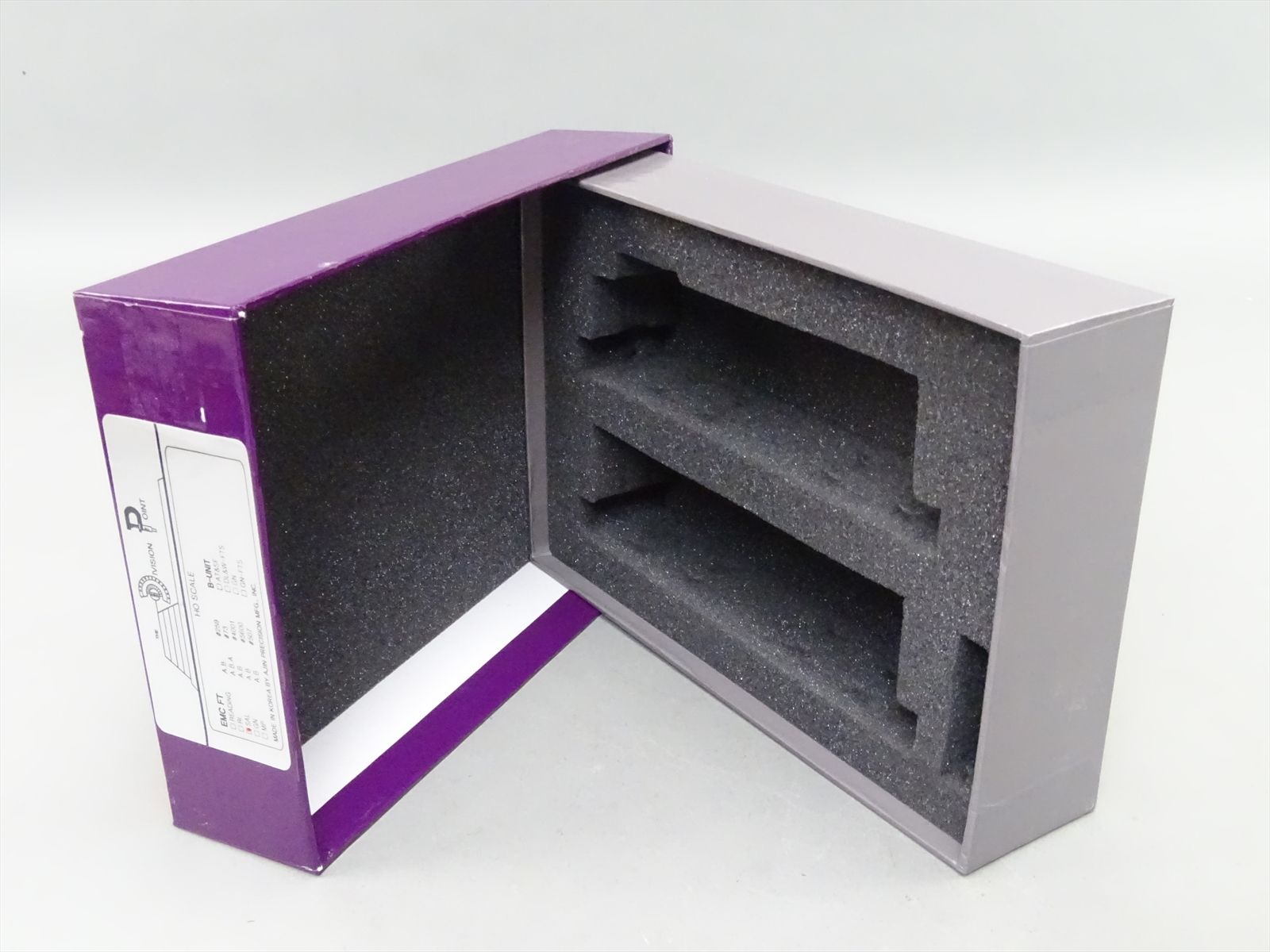 - The original box and foam are included.