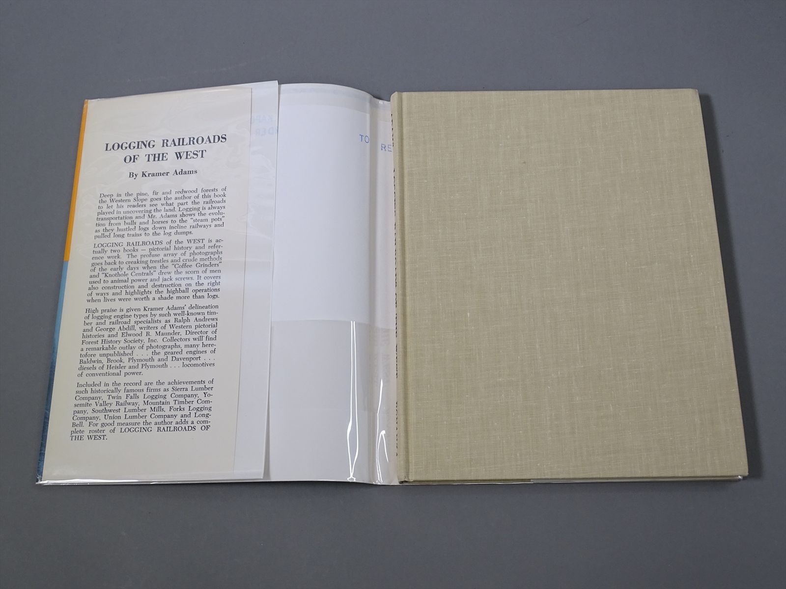 Railroad Book - Logging Railroads of the West - Kramer Adams - 160 Pages