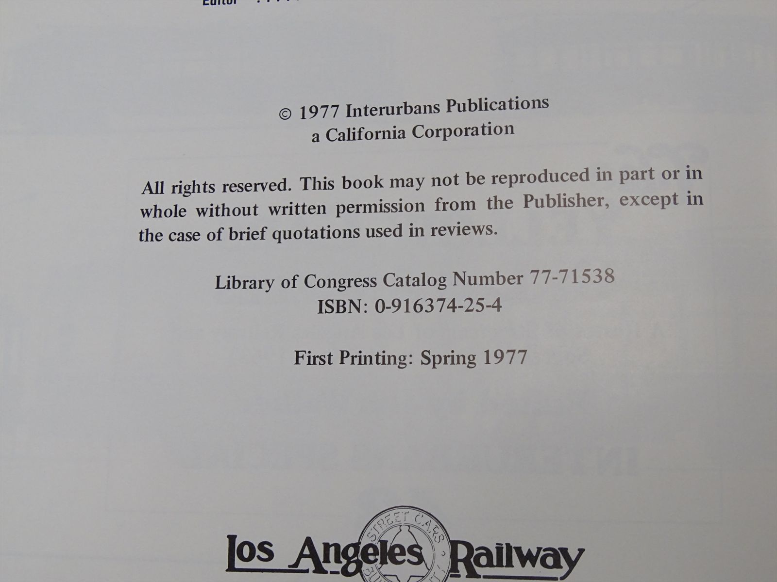 Copyright 1977 - Published by Interurbans Publications