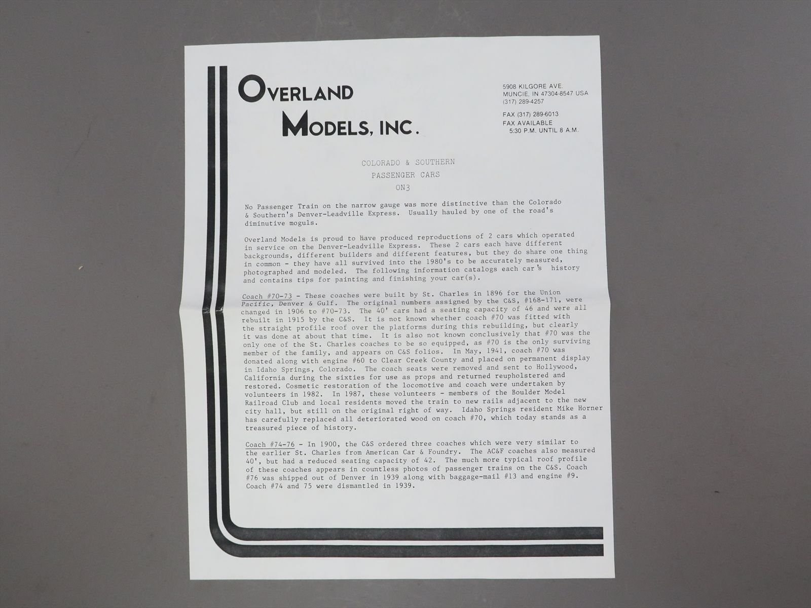On3 Brass Model - OMI 0729 C&S Colorado & Southern Coach #70 - #73 - Unpainted - 1988 Run - MS Models