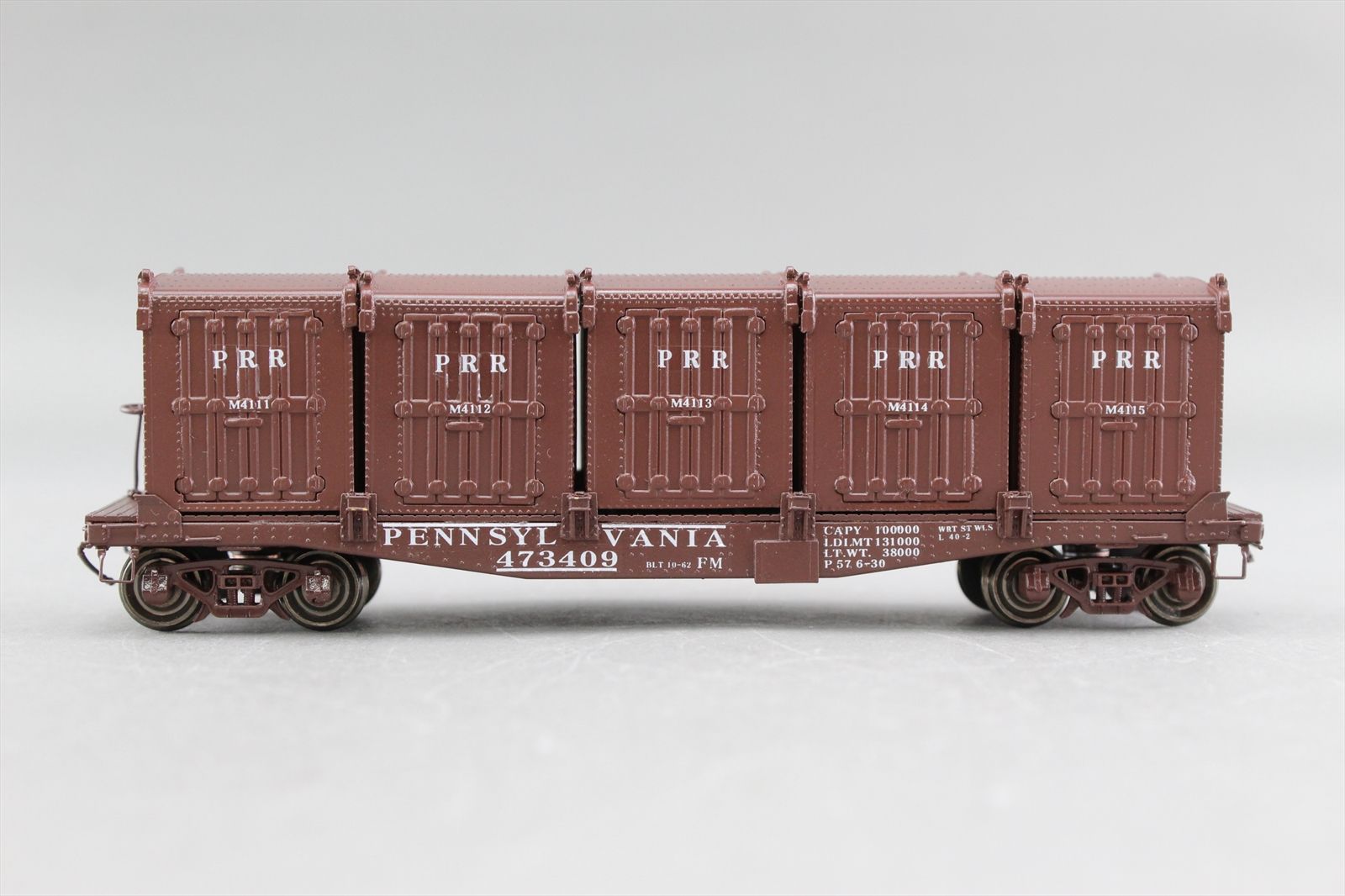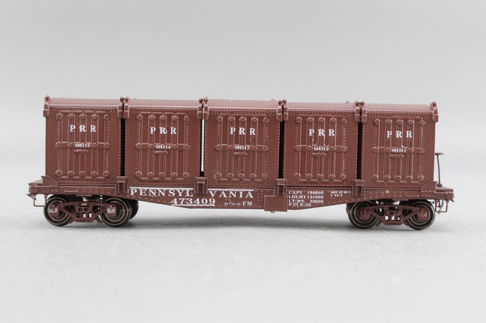 HO Brass Model - Railworks R366P PRR Pennsylvania FM 40' Container Car w/ 5 DD-1 Containers #473409 - F/P - 2000 Run - Woosung