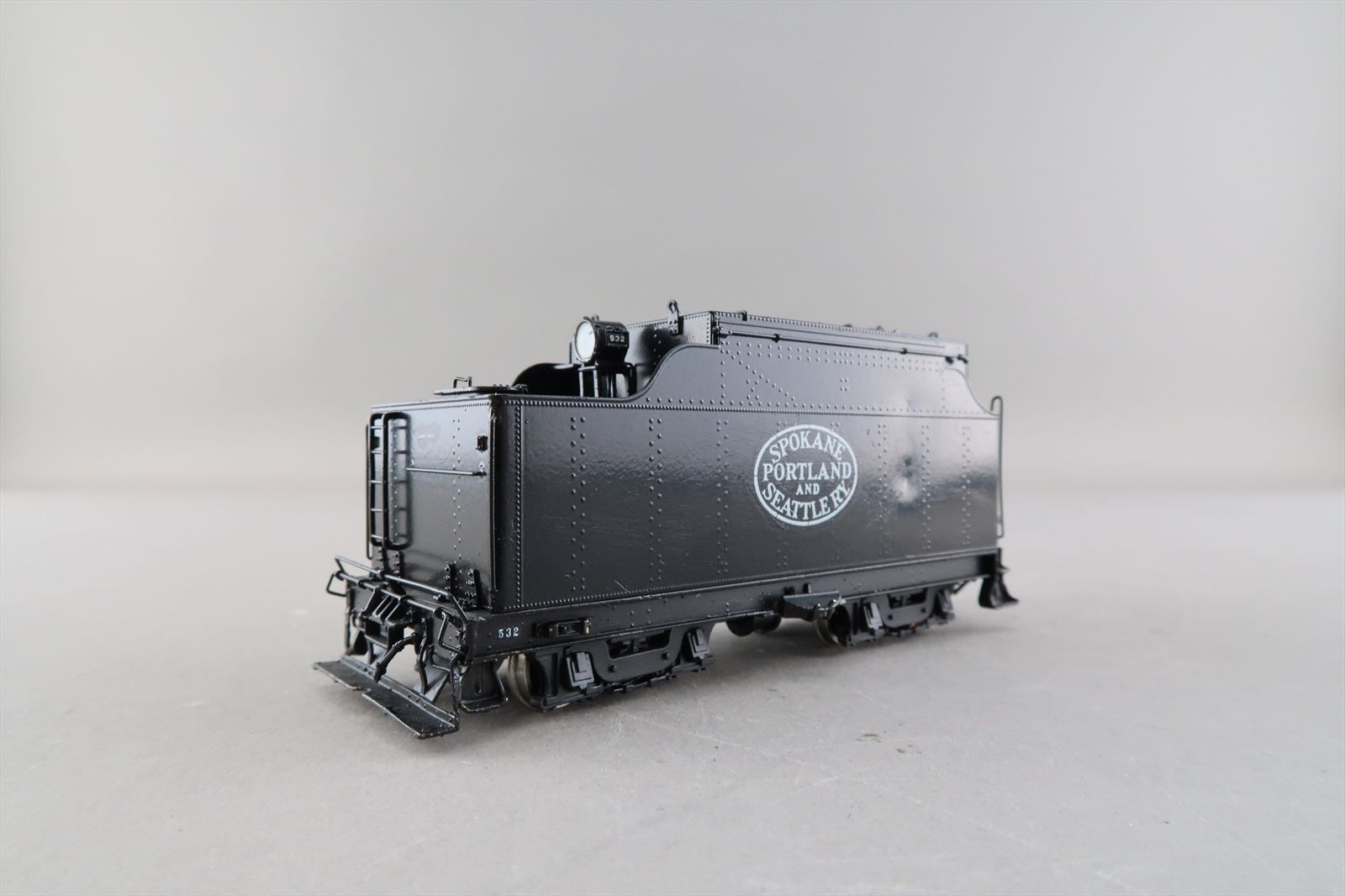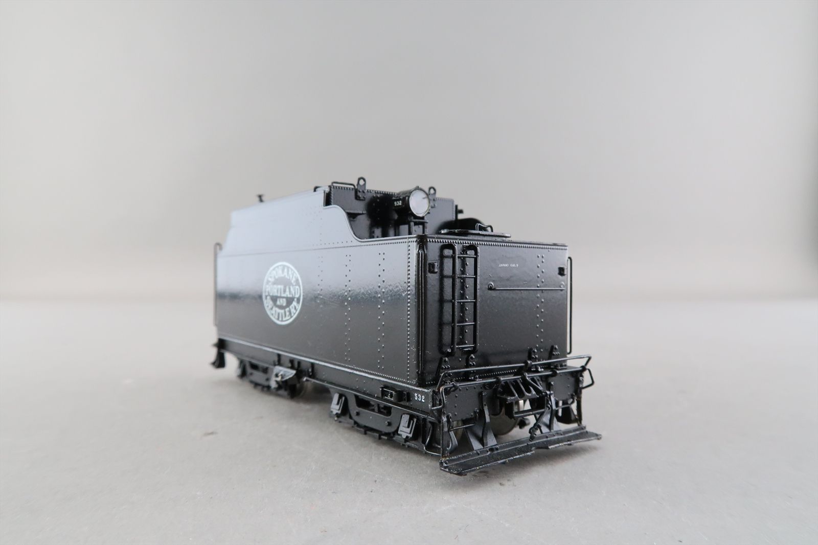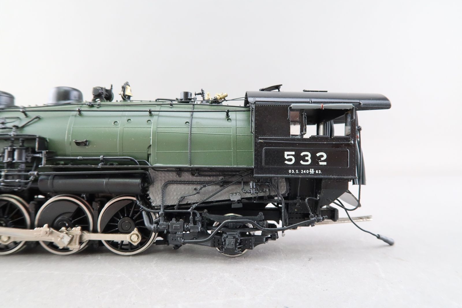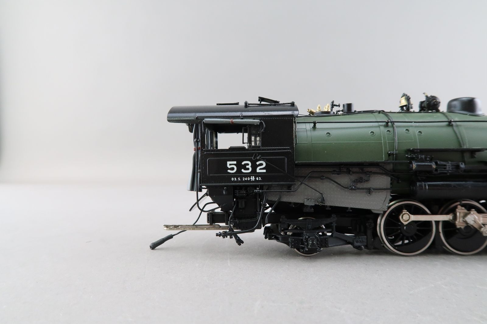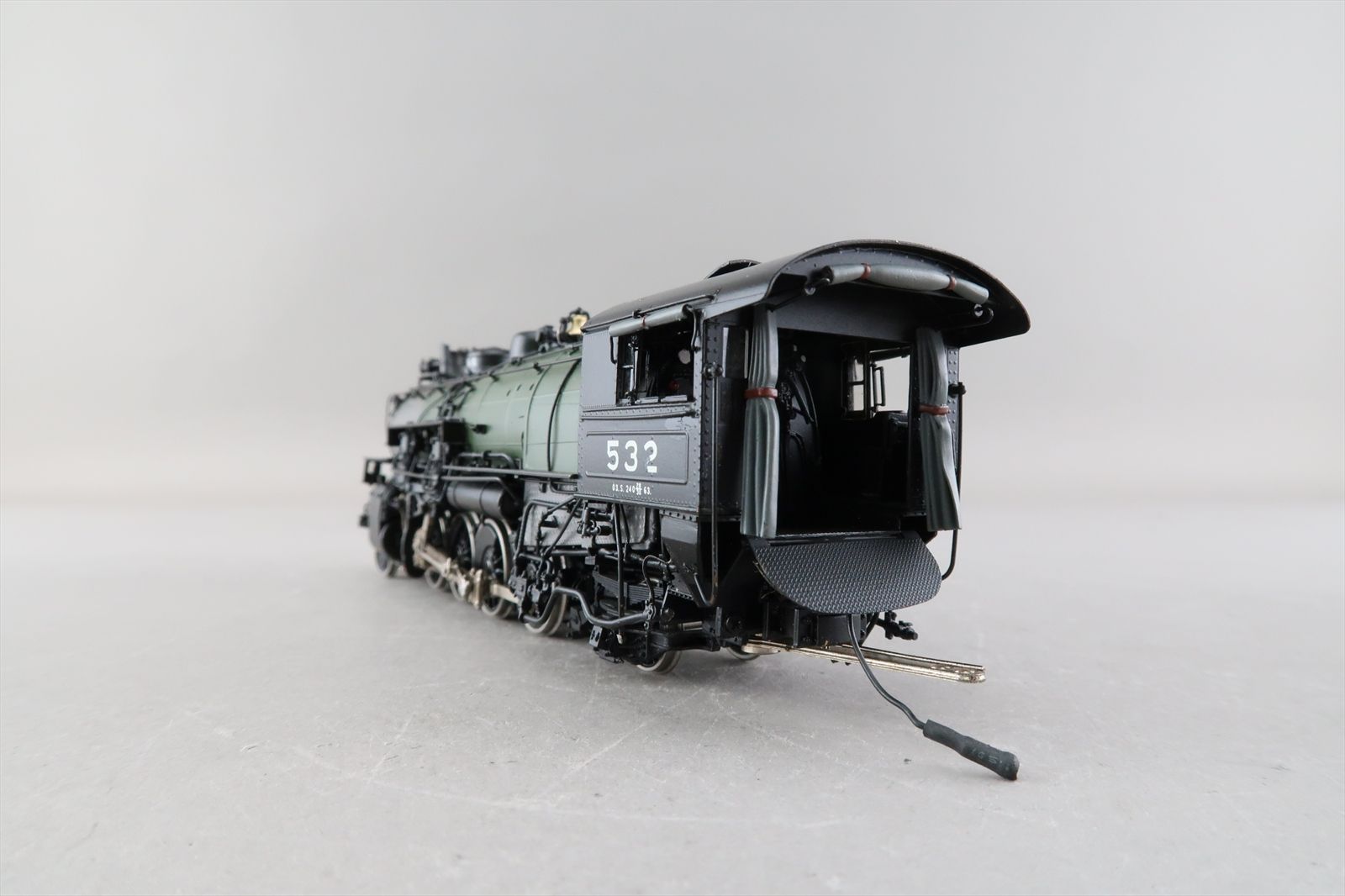 Notes: The smoke deflector and deflector rest (on the boiler) is missing from the smoke stack. Part of the number decal on the fireman's side of the cab is missing. There is a ding on the engineers side of the tender.