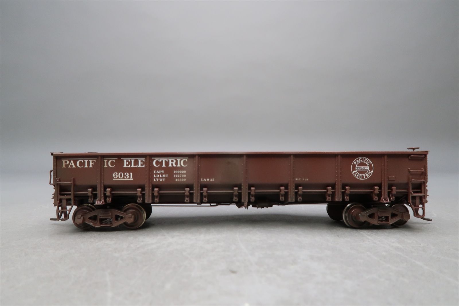 HO Brass Model - CIL 2095.1 Pacific Electric G-50-9 Gondola T-Section Bettendorf Trucks #6031 - Custom Weathered - 1994 Run - F.M. Models