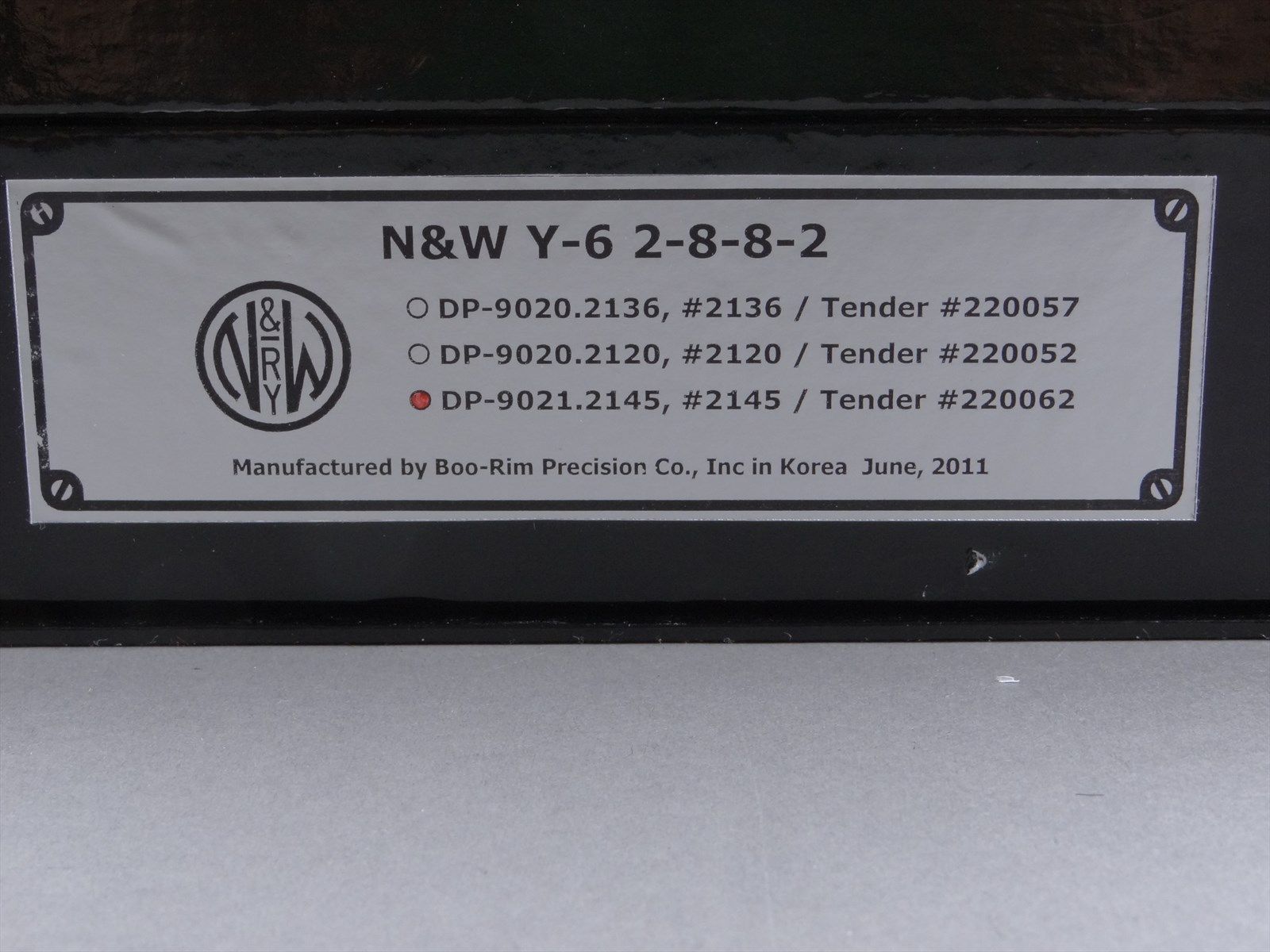 | Notes: | FACTORY PAINTED - ROAD #2145 WITH 22 H CLASS 22,000 GAL / 30 TON TENDER #220062 WITH DOGHOUSE. BUCKEYE ROLLER-BEARING TRUCKS; 58 INCH DRIVERS. |