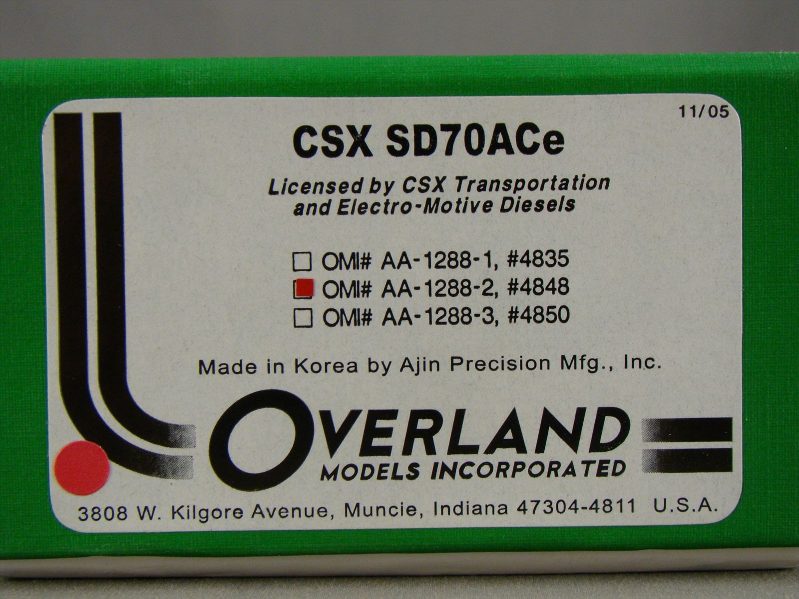 HO Overland Models, OMI #AA-1288-2 CSX SD70ACe Road #4848. 2005 Run.