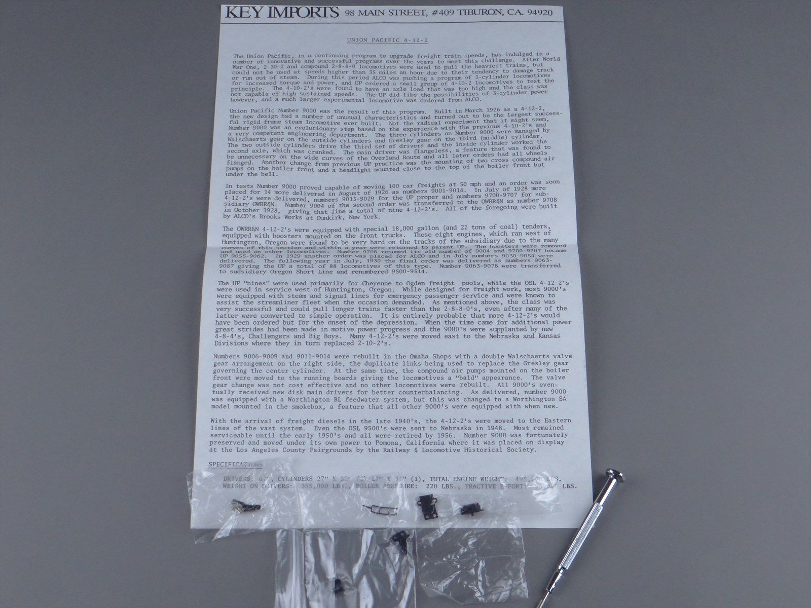 HO Key Imports CS#79 Samhongsa UP Union Pacific 4-12-2 #9000 - Modernized