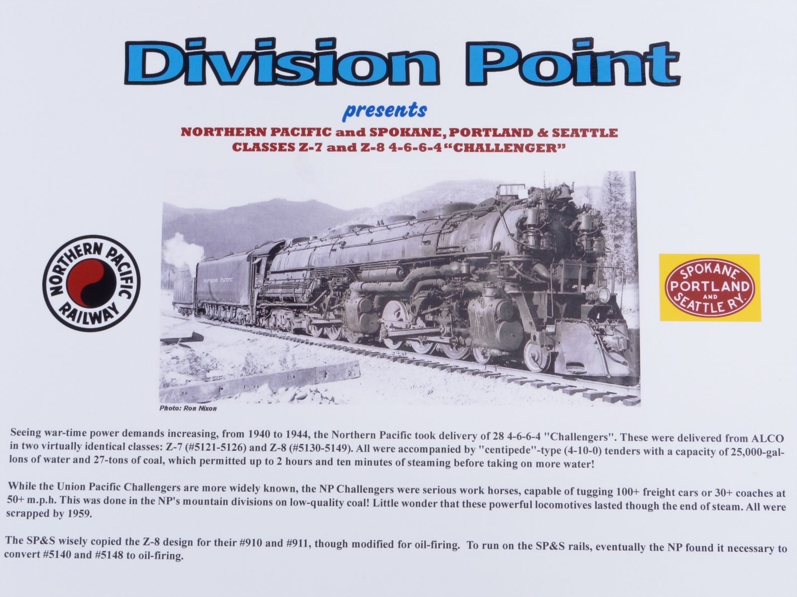 Spokane, Portland & Seattle 4-6-6-4 Class Z-8 Challenger Steam Locomotive & Tender - Road #910