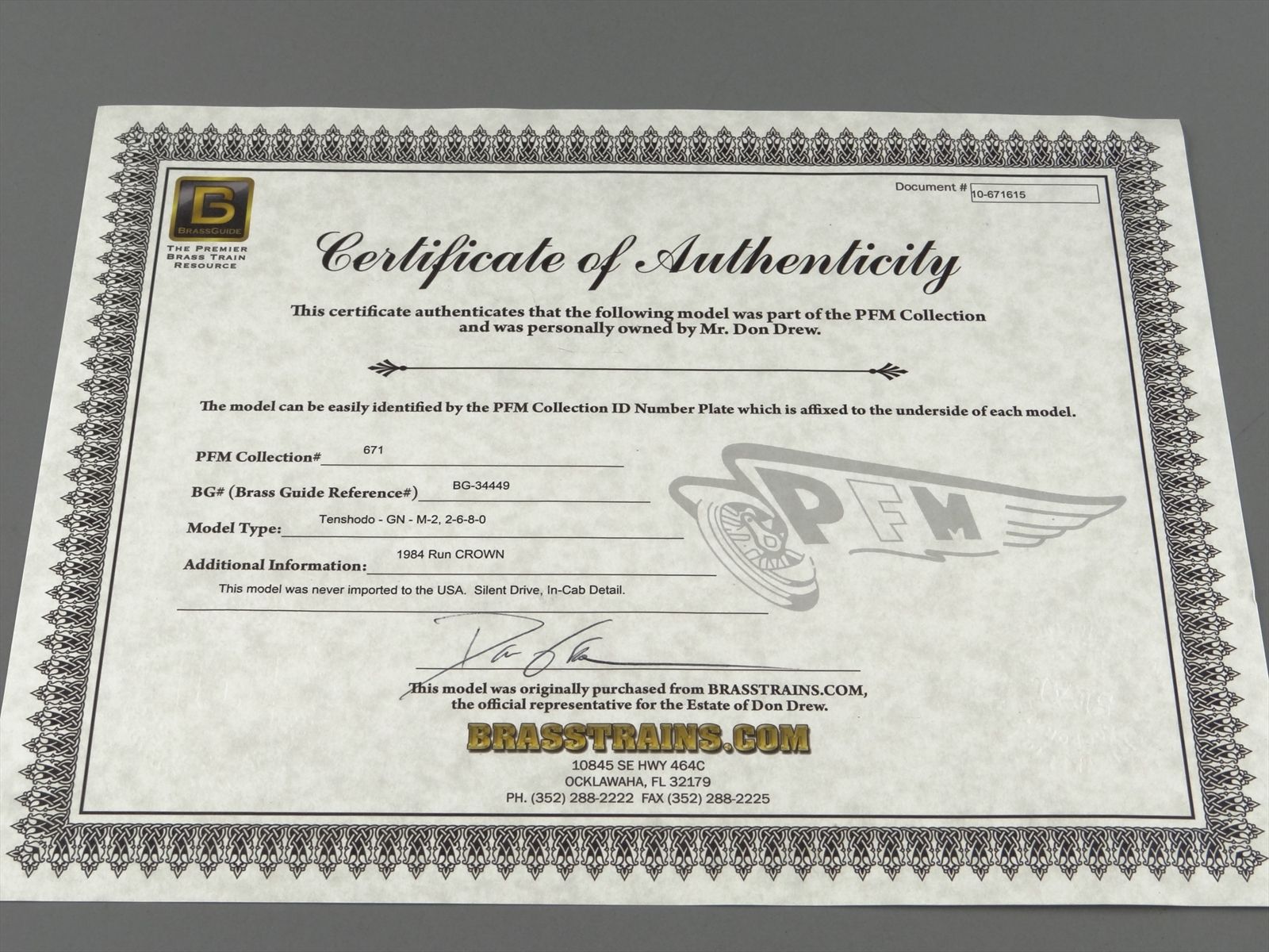 - This models does not have an original box or serial number plate, because it was a gift to Don Drew and sent to PFM for inspection. Obviously PFM never imported the model.