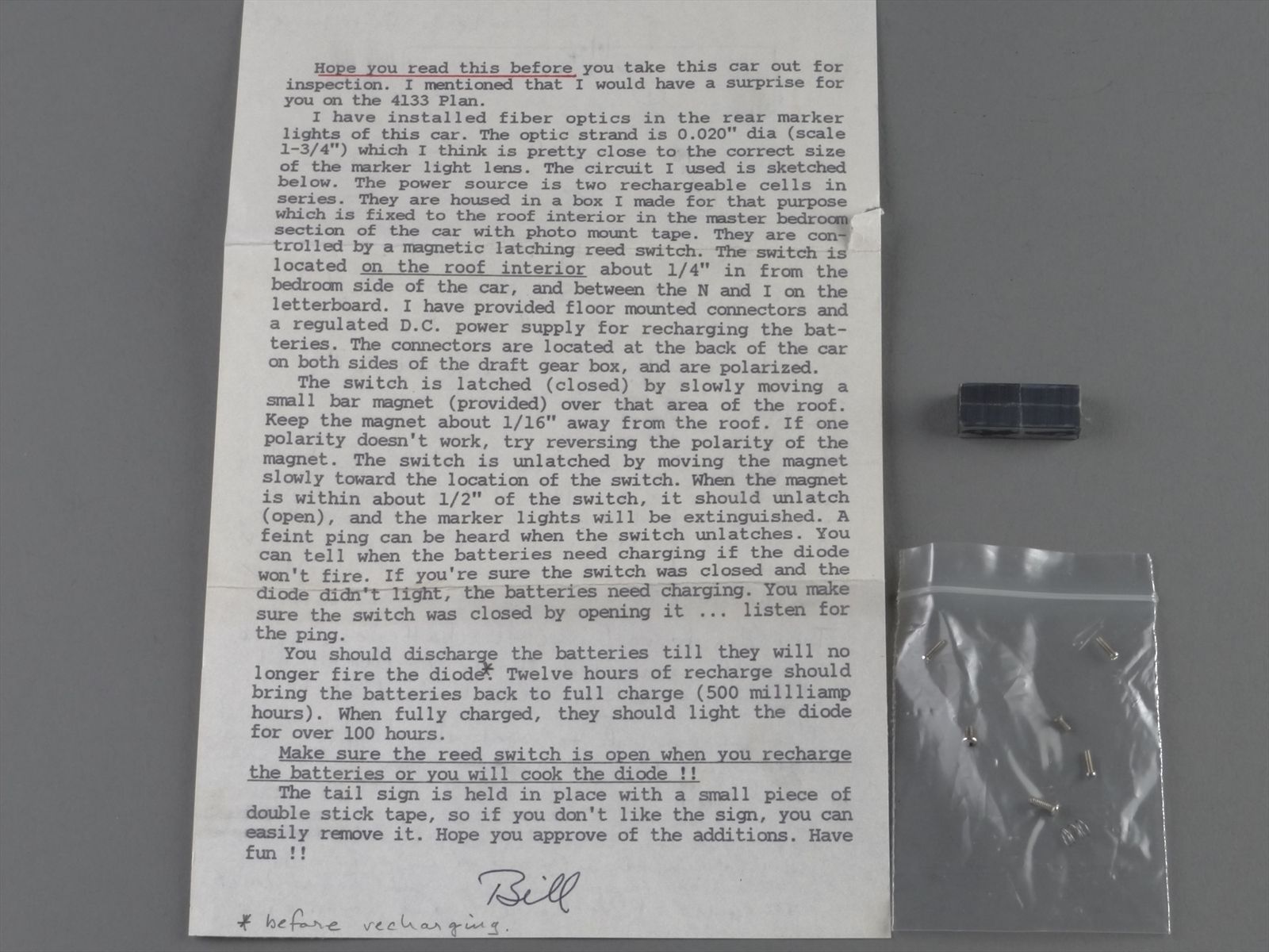 - The Observation car has custom battery powered fiber-optics tail marker lights installed but they are not working