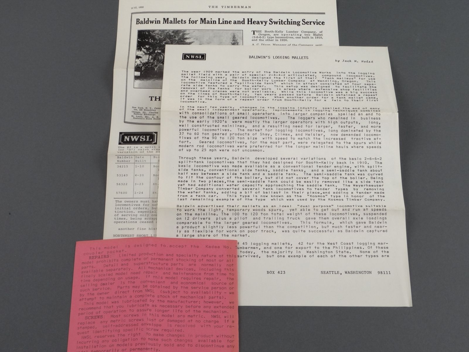 Booth Kelly 2-6-6-2T Steam Logging Mallet Articulated Locomotive