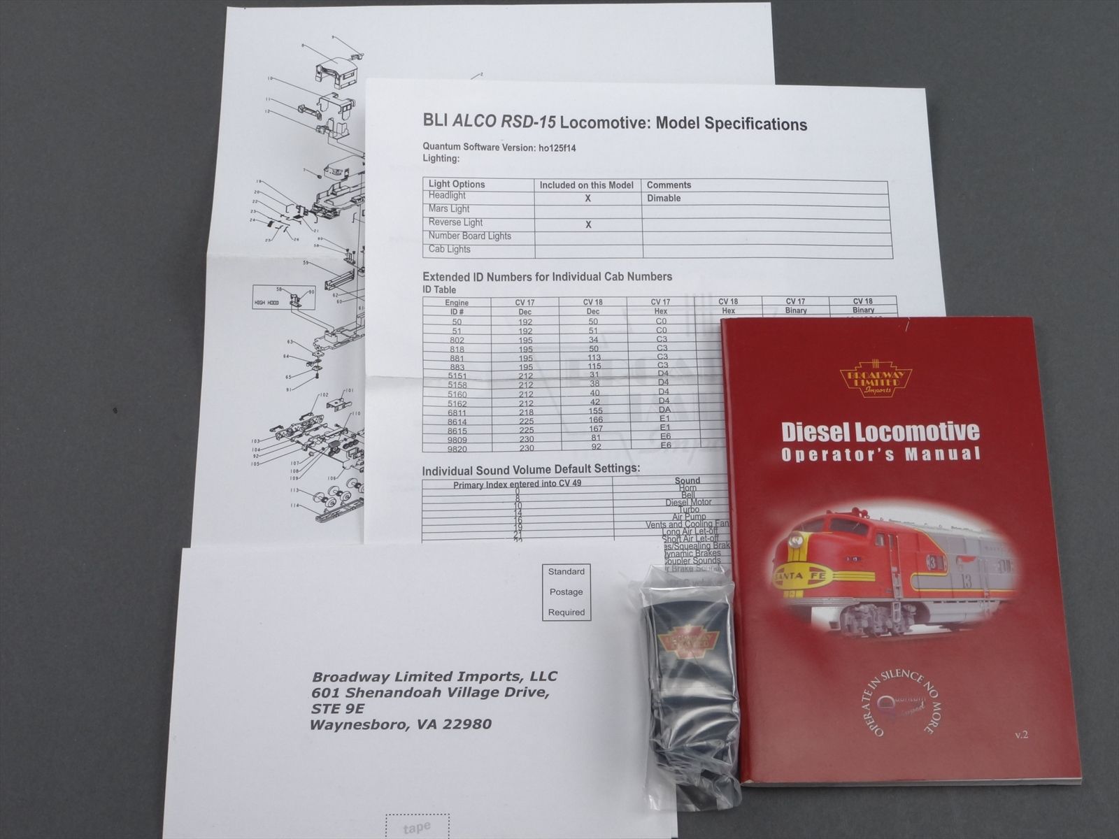 HO BLI 316 Broadway Limited ATSF Santa Fe Zebra Stripe Alco RSD-15 Diesel Engine #802