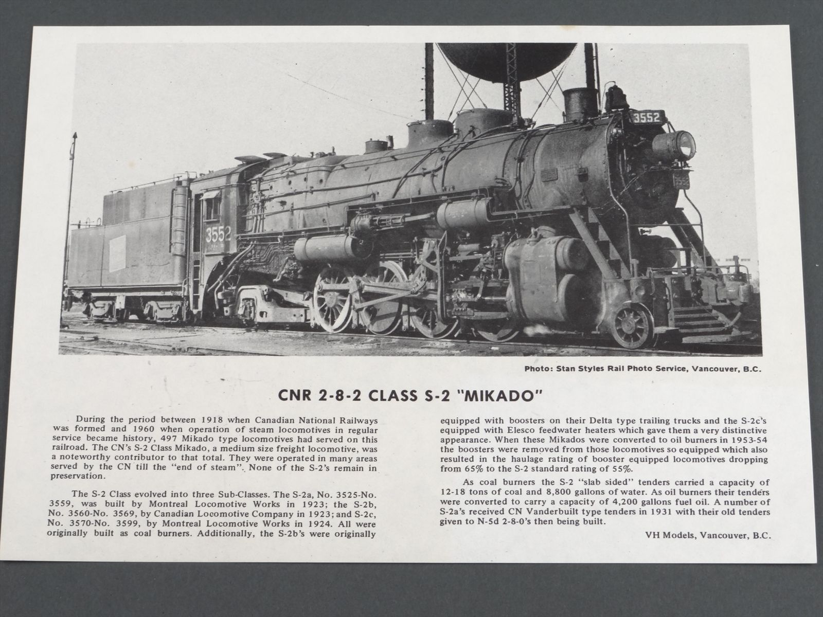 HO Brass Model Train - VH Van Hobbies CNR CN Canadian National 4-8-2 S-2 / S-2a #3552 - Custom