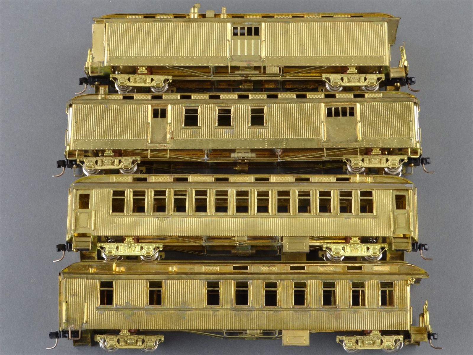 | Notes: | UNPAINTED - SAN JUAN SET 4 CAR SET WITH TRUCKS - BAGGAGE/BAGGAGE-MAIL/COACH/PARLOR-BUFFET |