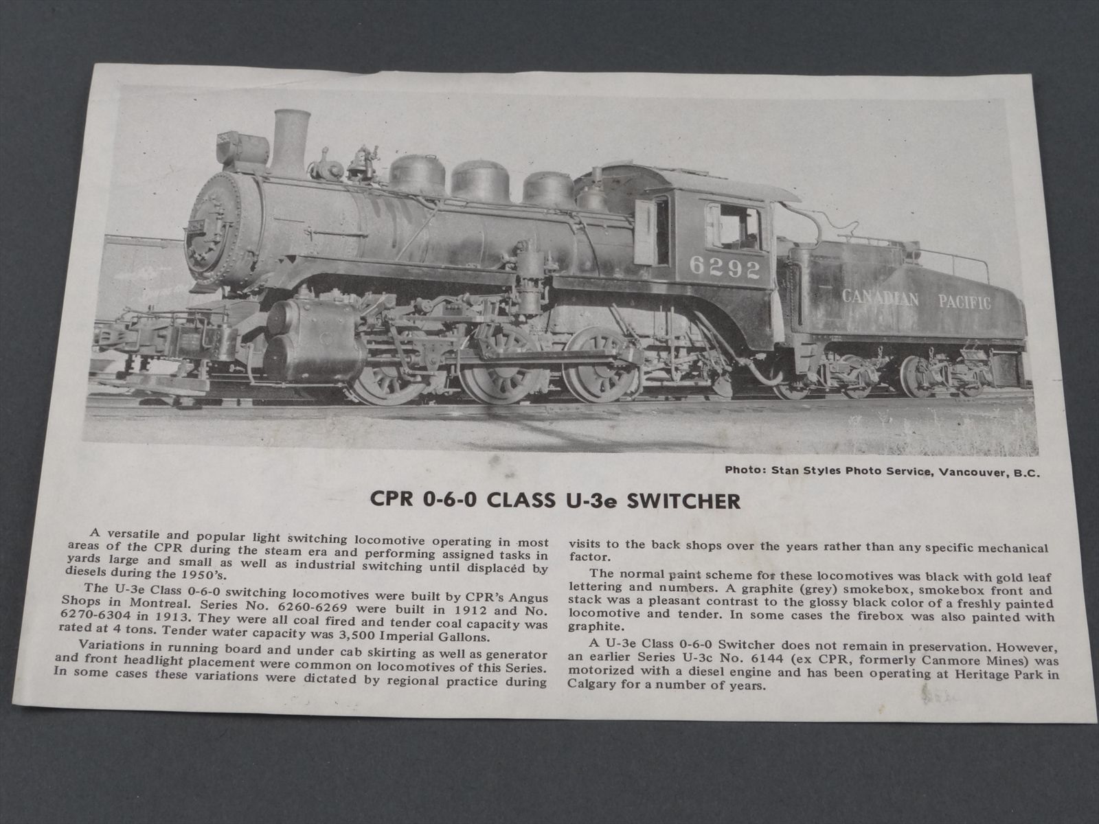 HO Brass Model Train - VH Van Hobbies CPR U-3e 0-6-0 Switcher