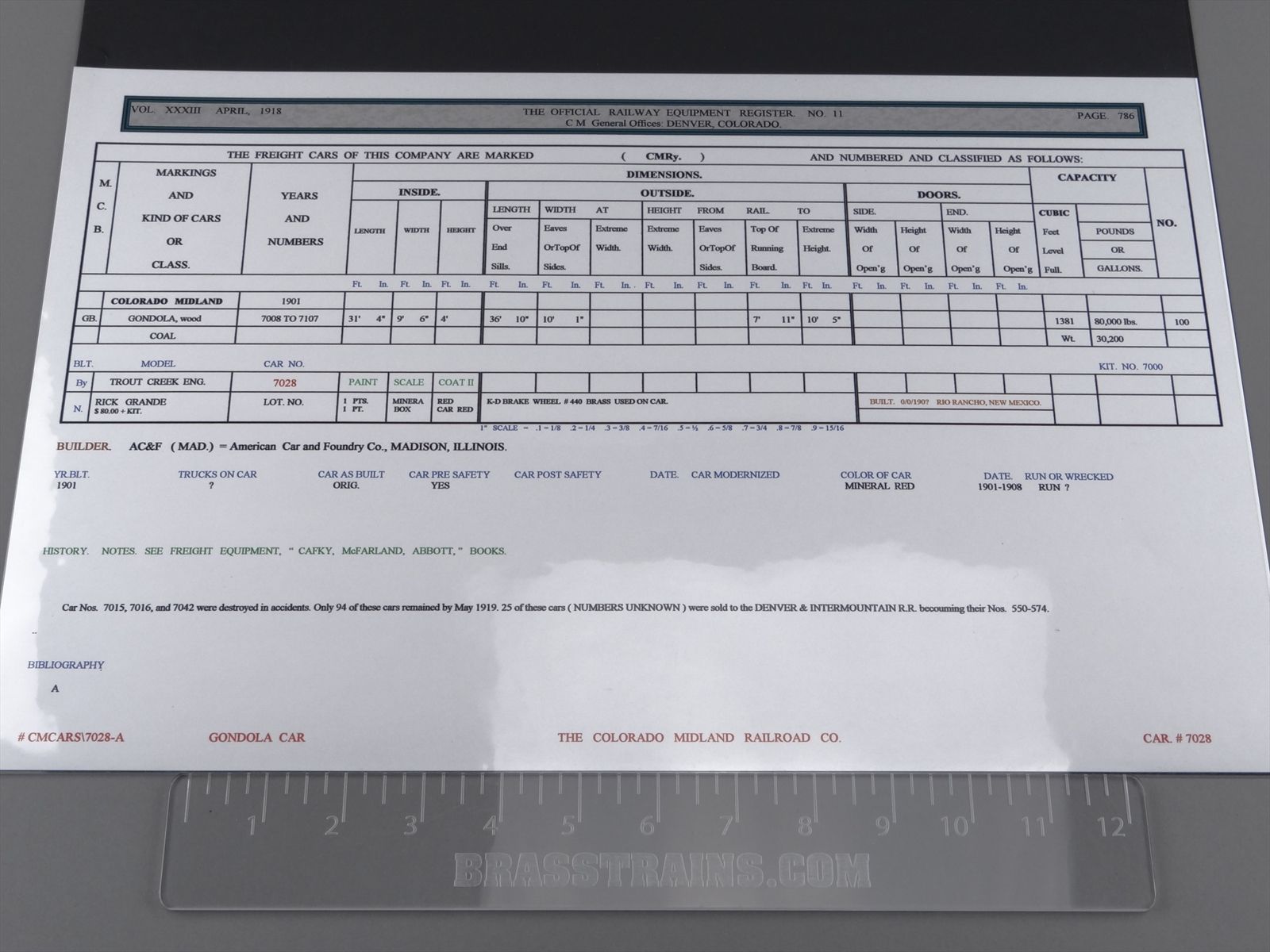 HO Trout Creek Engineering Pro Built Kit - CM Colorado Midland 37' 40T Gondola #7028 - Custom