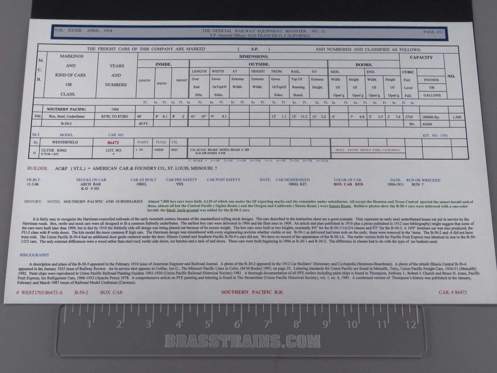 HO Westerfield 1701 Pro Built Kit - SP Southern Pacific B-50-2 Box Car #86472 - Custom