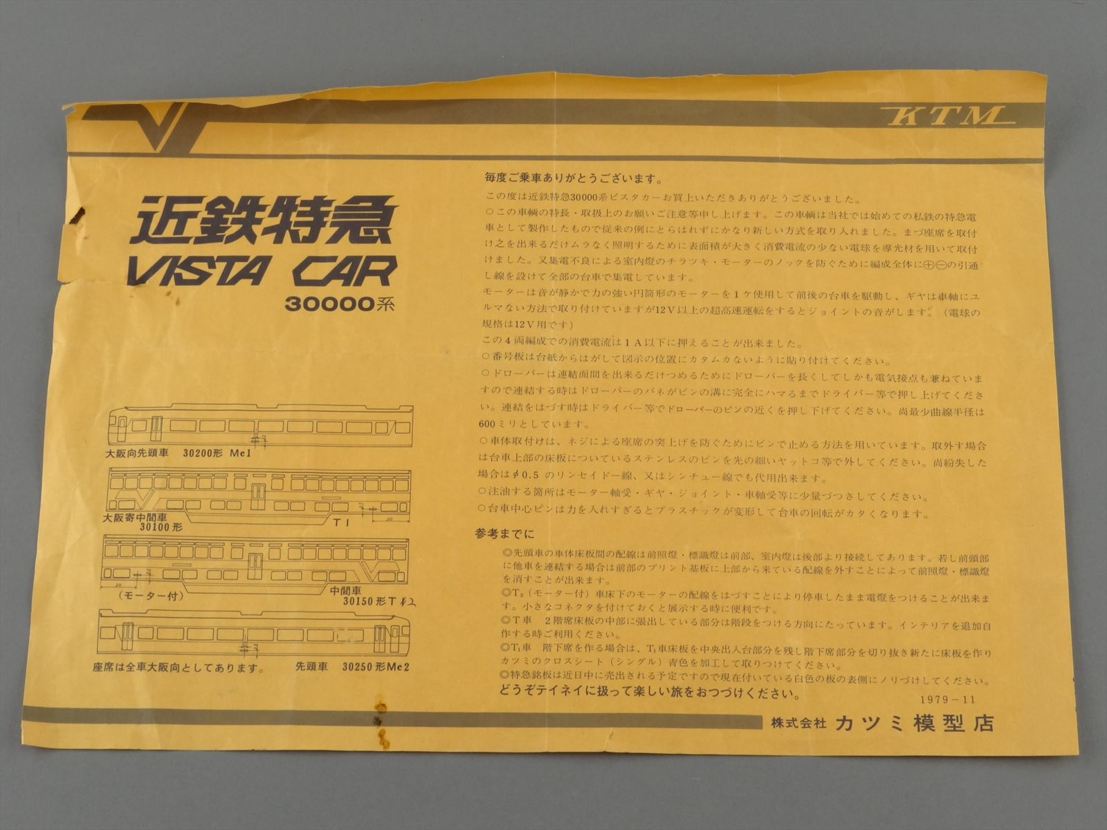 HO Scale Japanese Brass - KTM Katsumi Vista Car 4 Unit Electric Passenger Train w/ Interiors & Lighting