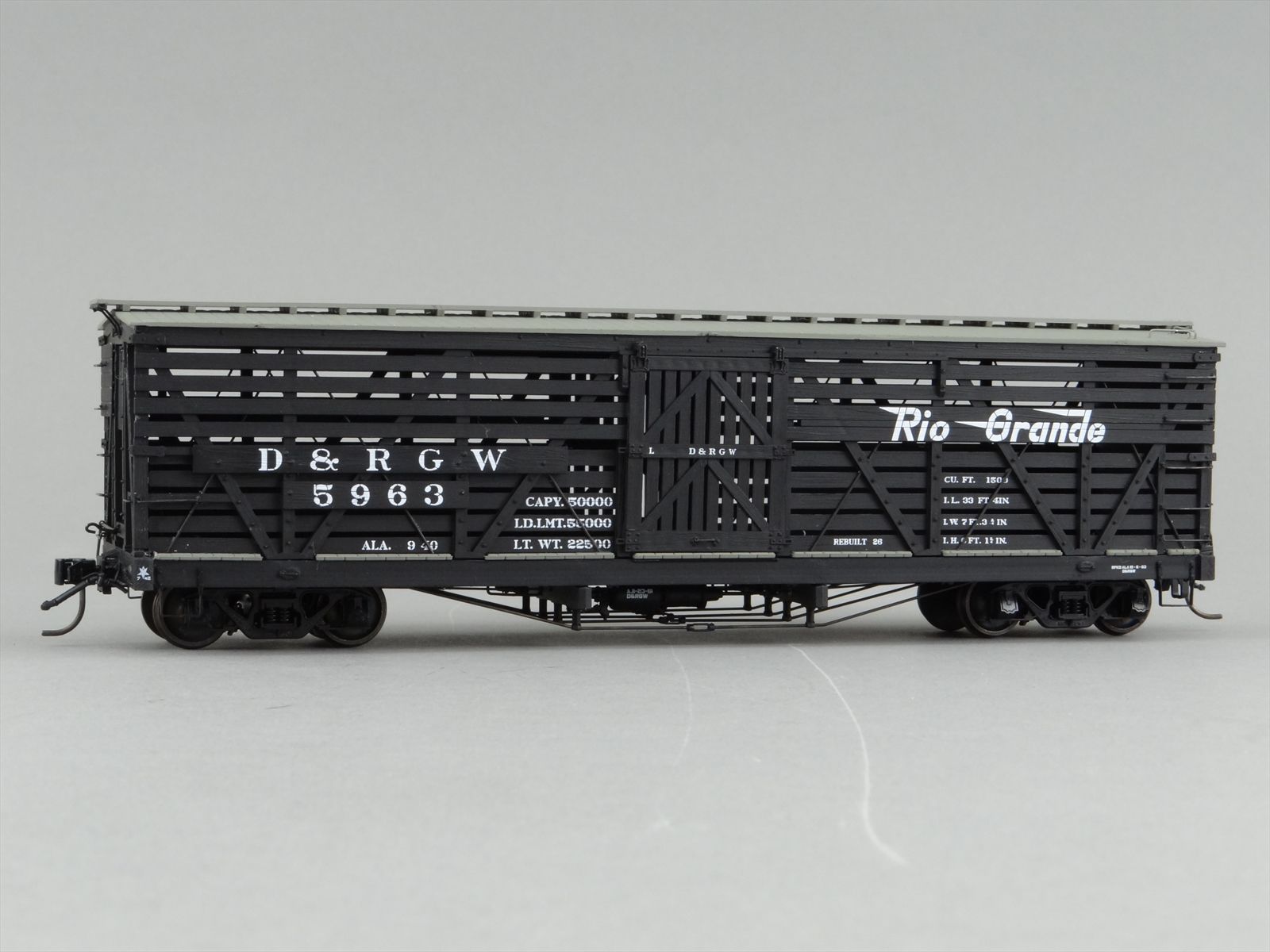 On3 Scale Ready-To-Run - San Juan Car Co. D&RGW Rio Grande 34' Stock Car #5963