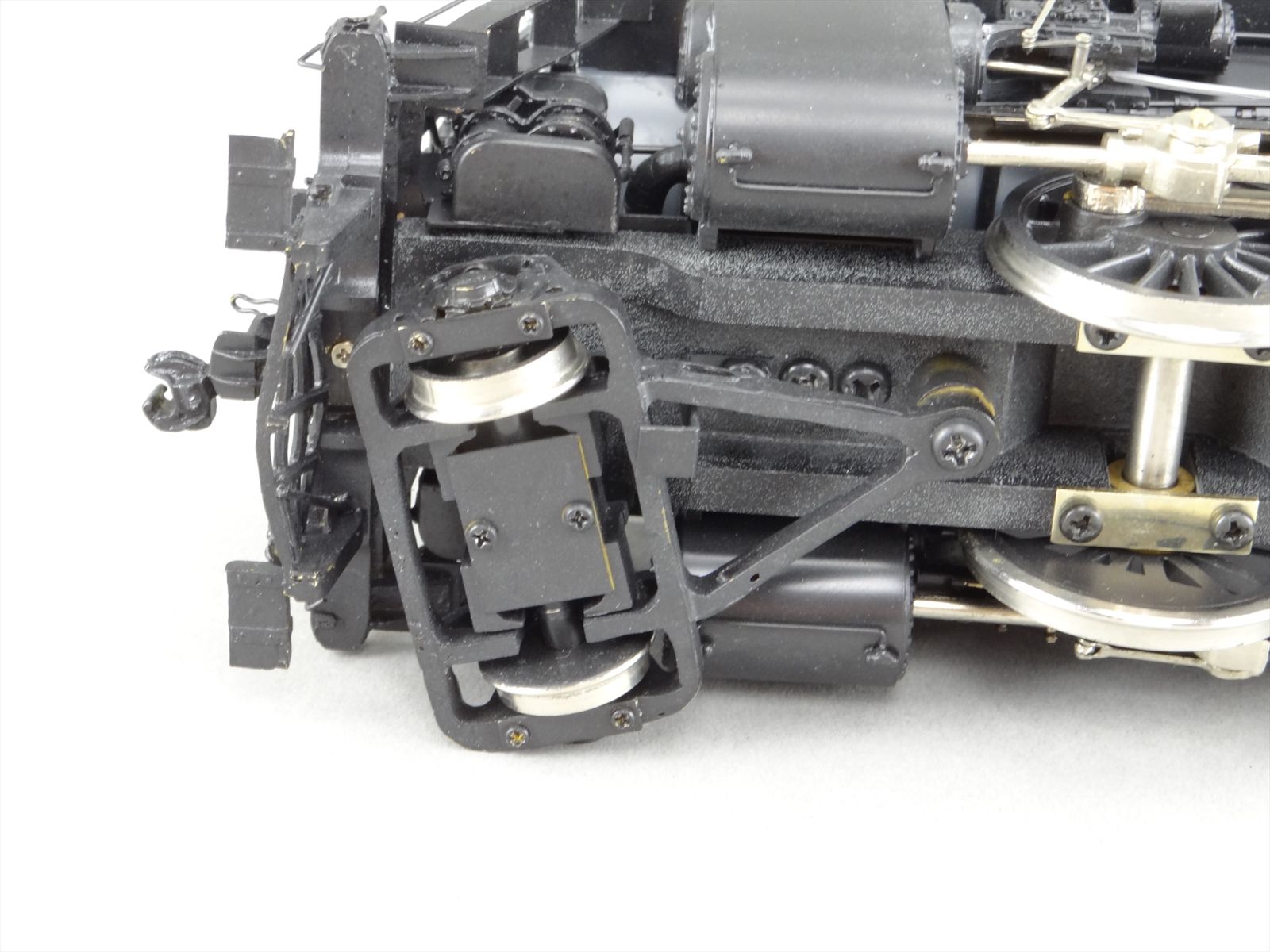 - Pilot has sustained some damage, it is bent a little and the left running board is tilted down. Underneath - where the boiler sheeting comes together - the seam is split loose. There is a detail missing from the right firebox/ashpan area under the walkway. Tender ladder and step have been repaired.