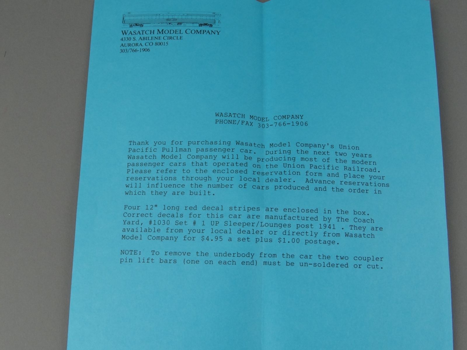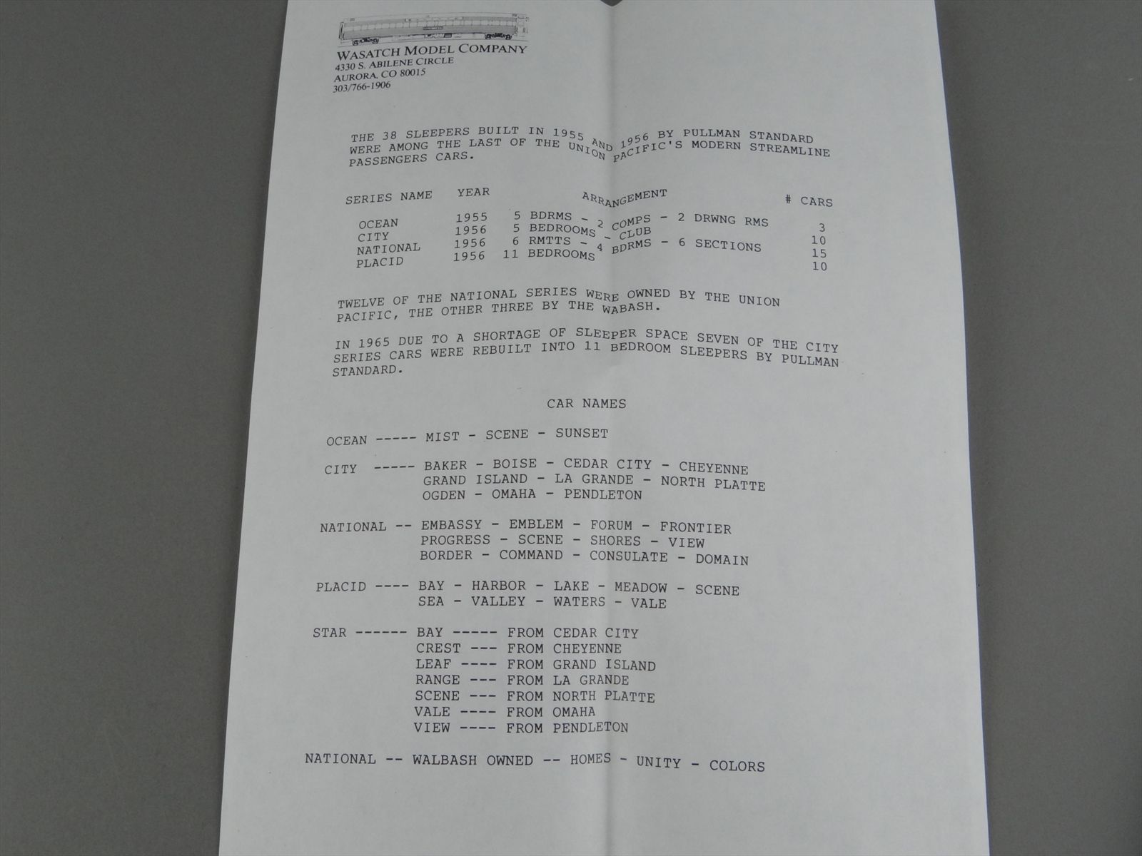 | Notes: | UNPAINTED - OCEAN SLEEPER - UNION PACIFIC SYSTEM - 5 BEDROOM - 2 COMPARTMENT - 2 DRAWING ROOMS - UNION PACIFIC SYSTEM - THE OVERLAND ROUTE |