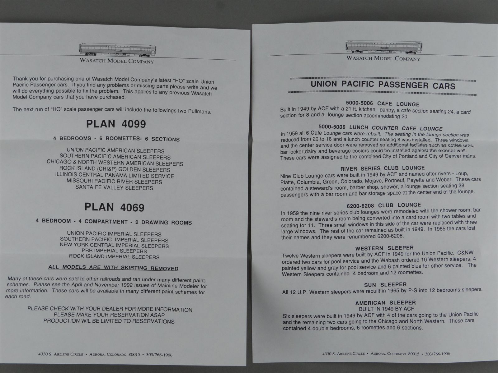 HO Brass Wasatch UP Union Pacific Club Lounge 6200-6208 Passenger Car - Unpainted