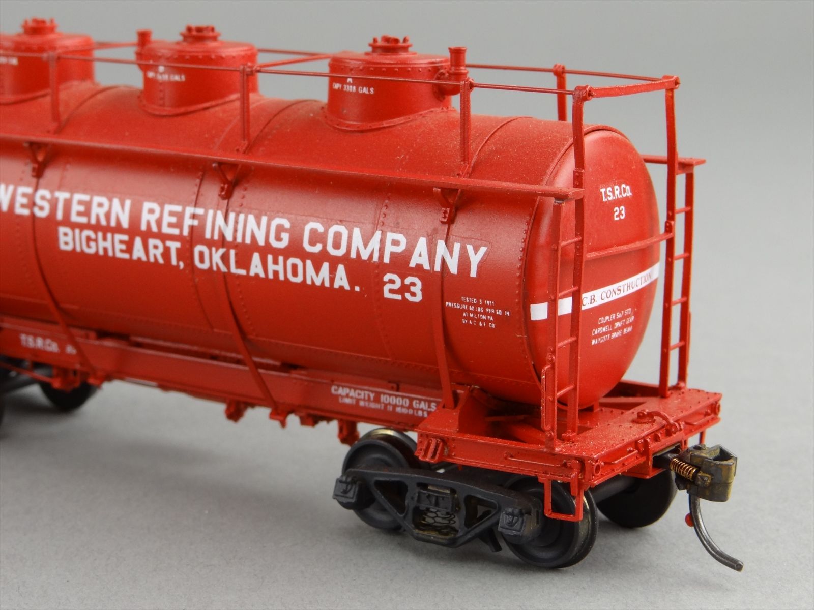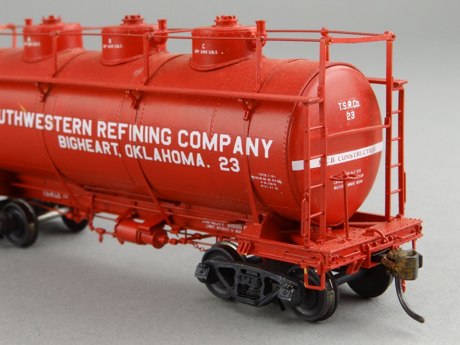 HO Brass W&R 10,000 Gal Tank Car Three Dome - Southwestern Refining Company #23 - CUSTOM