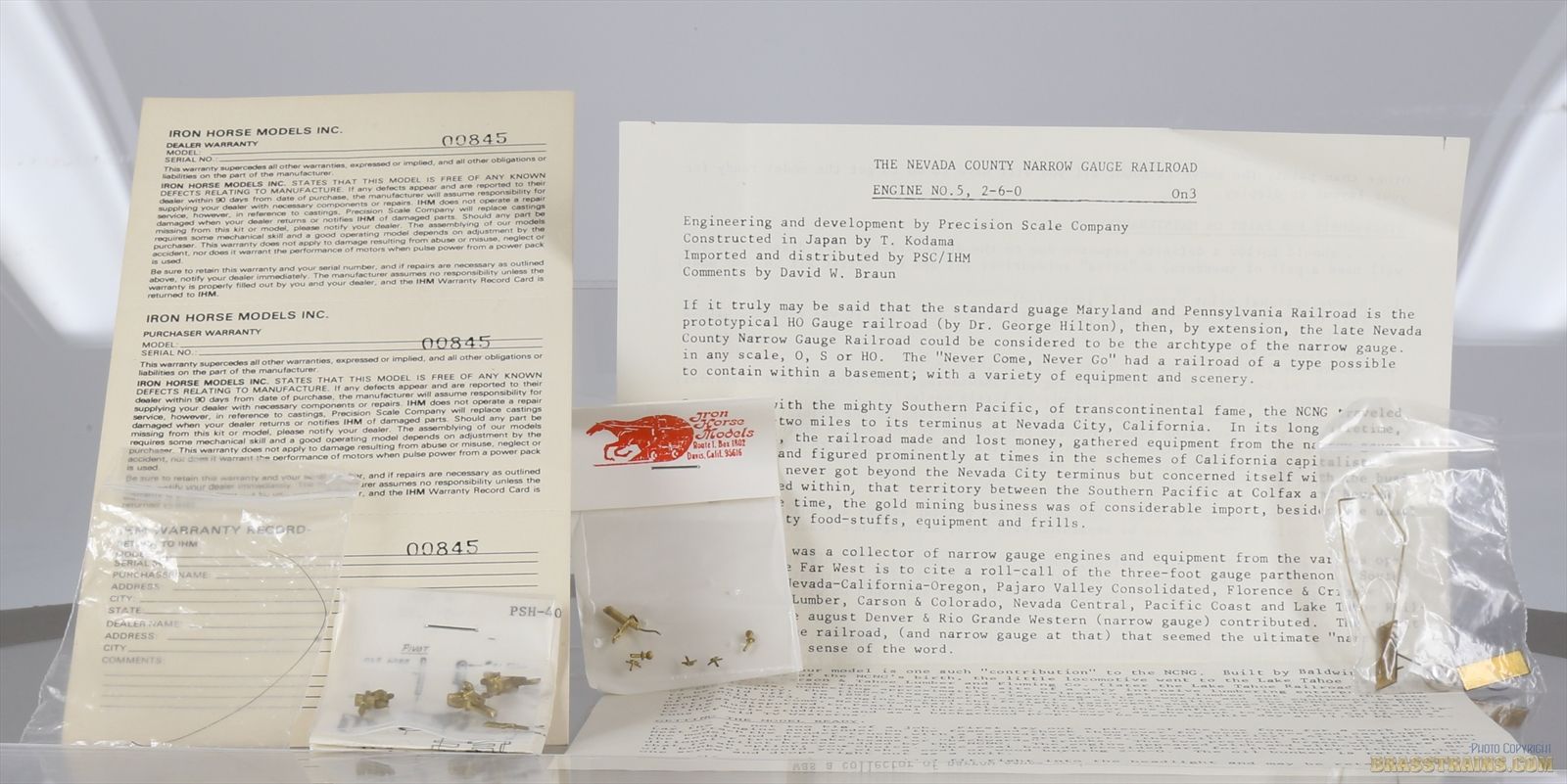 | Notes: | UNPAINTED - ROAD #5 NEVADA COUNTY NARROW GAUGE RAILROAD. COAL BOARDS, IN CAB DETAIL. IHM SERIAL NUMBERED |