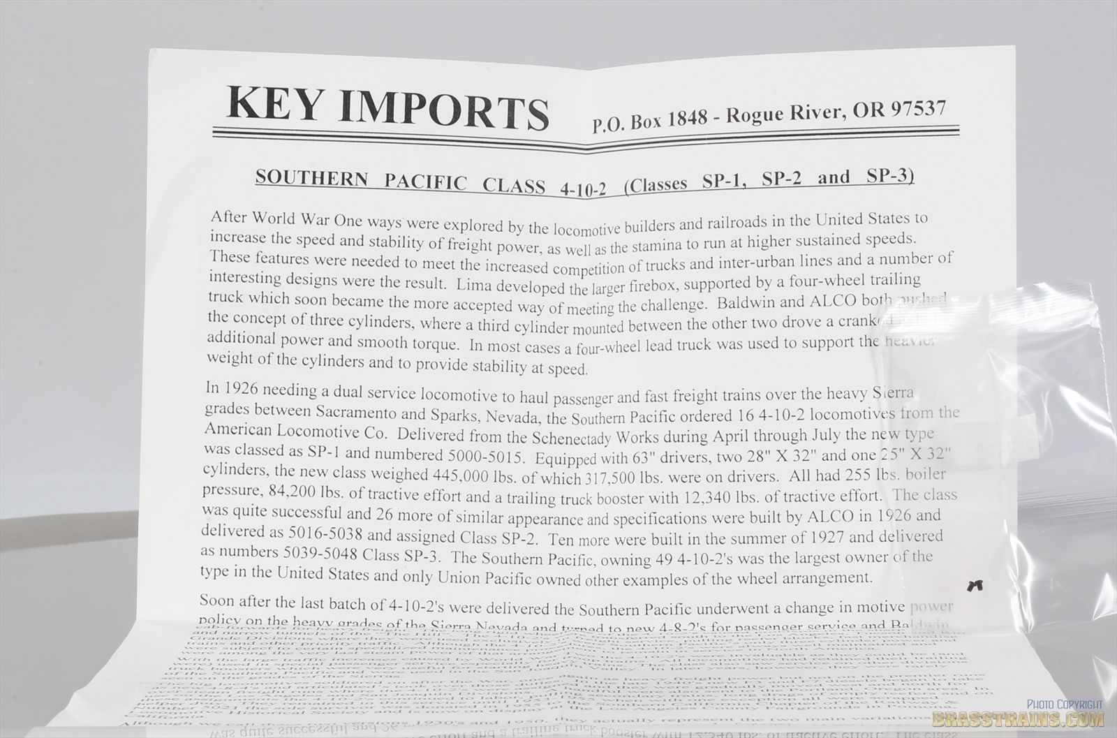 | Notes: | FACTORY PAINTED - EARLY #5000 SOUTHERN PACIFIC LINES - SINGLE SAND DOME - 16K TENDER |