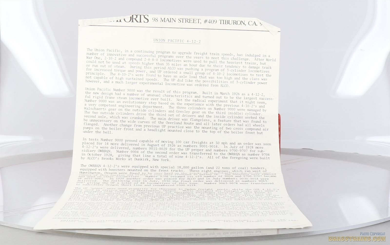 HO Brass Model Train - Key Imports CS #79 UP Union Pacific 4-12-2 #9029 - Standard Niners