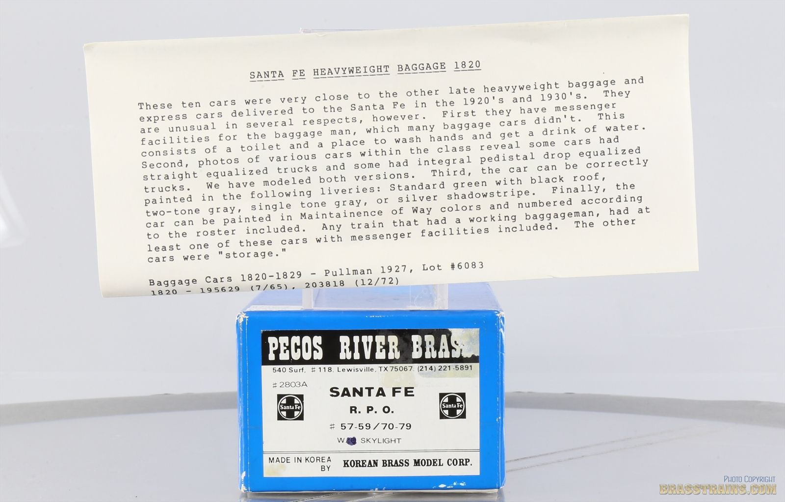 HO Brass Model Train - PRB Pecos River AT&SF RPO #60 w/ Skylight - Custom