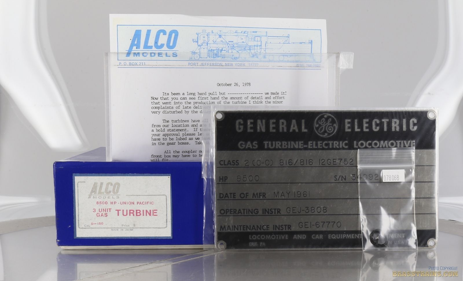 | Notes: | UNPAINTED - GE 1-30 8500 HP 3 UNIT GAS TURBINE - INCLUDES REPRO BUILDERS PLATE |