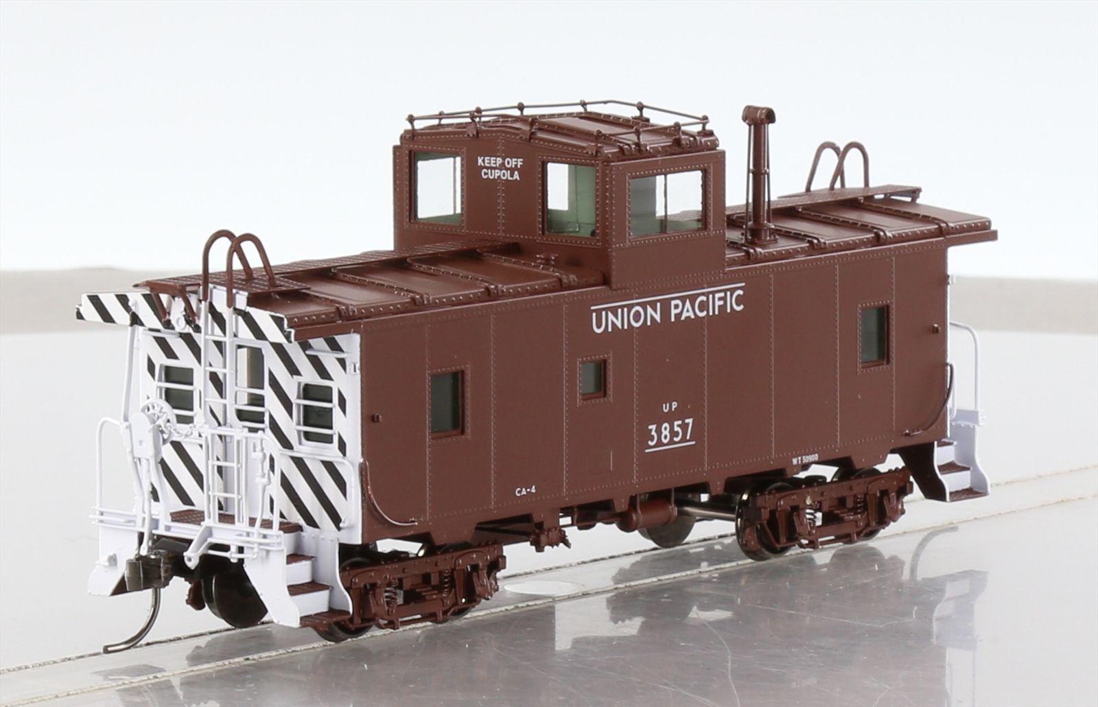 | Notes: | FACTORY PAINTED - CA-4 #3857, FREIGHT CAR RED W/ WHITE/BLACK STRIPED ENDS, ORIGINAL TRUCKS (TEST SCHEME) |