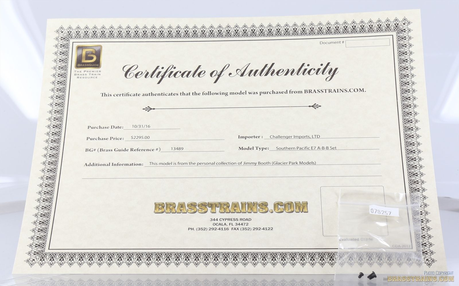 This model is from Jimmy Booth’s (Glacier Park Models) personal collection. Jimmy has worked with many importers through the years, and helped to produce the drawings that were used for many of the CIL locomotives & passenger cars, in turn he was given ‘first choice’ from CIL at some of the finest of all their available models. COA will be included with the model upon shipment.