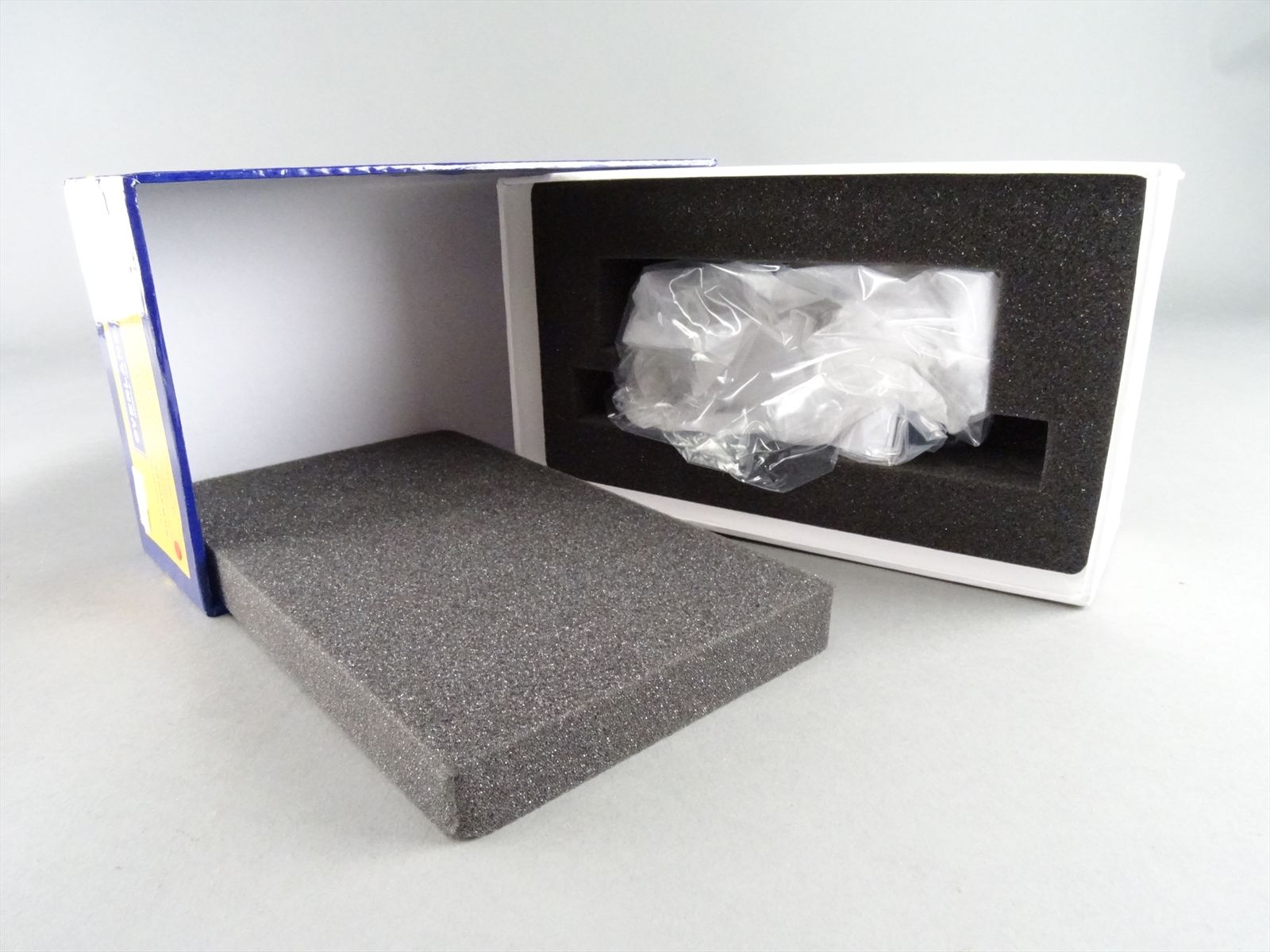 - The original box and foam are included.