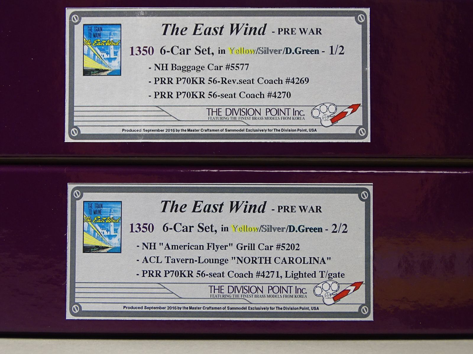 | Notes: | FACTORY PAINTED - YELLOW/SILVER/D.GREEN, EAST WIND SET PRE-WAR, INCLUDES - NH BAGGAGE CAR #5577, PRR P70KR 56 REV.SEAT COACH #4629, PRR P70KR 56 SEAT COACH #4270, NH "AMERICAN FLYER" GRILL CAR #5202, ACL TAVERN-LOUNGE 'NORTH CAROLINA', PRR P70KR 56-SEAT COACH #4271 W/ LIGHTED TAIL GATE |